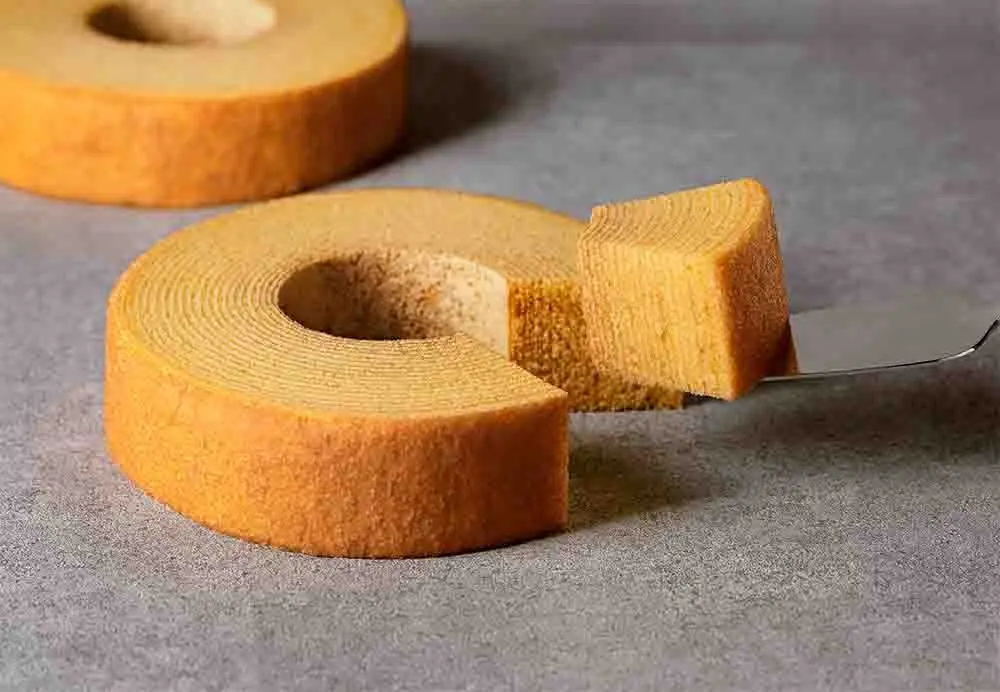 ねんりん家の誇る二大バームクーヘンのひとつ『ストレートバーム やわらか芽』。日本の味覚にふさわしい柔らかさを目指し、たっぷりの卵を贅沢に使ってふっくらとジューシーに焼き上げました。