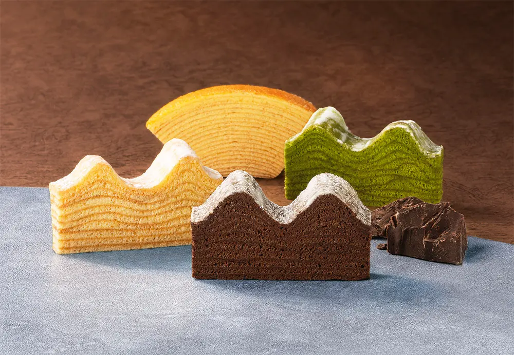 4種の美味しさを楽しめるひとくちサイズのバームクーヘン詰合せです。2つの代表作『マウントバーム しっかり芽』『ストレートバーム やわらか芽』、冬限定『マウントバーム ブラウニー』、芳醇に⾹る『マウントバーム お抹茶』。