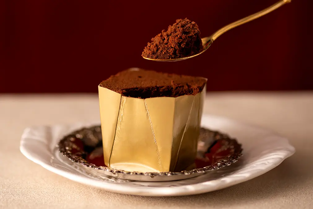丁寧に焦がした砂糖とミルク。ひと手間かけた材料から生まれたゴールドショコラ。まるでキャラメルのように、⾹ばしくコク深い味わいをお楽しみいただけます。濃厚なバタ―風味のバームクーヘンにゴールドショコラをとろりとかけた、特別な一品です。