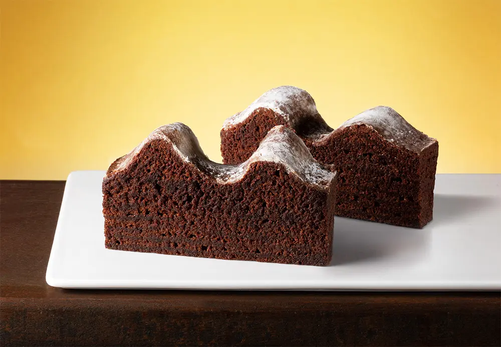 生地は、ねんりん家の冬の名物『マウントバーム ブラウニー』。ナッティな味わいの“ベネズエラ産カカオマス”とスイス‧フェルクリン社の“百年ココア”を練りこみ、長時間じっくりと焼き上げました。
