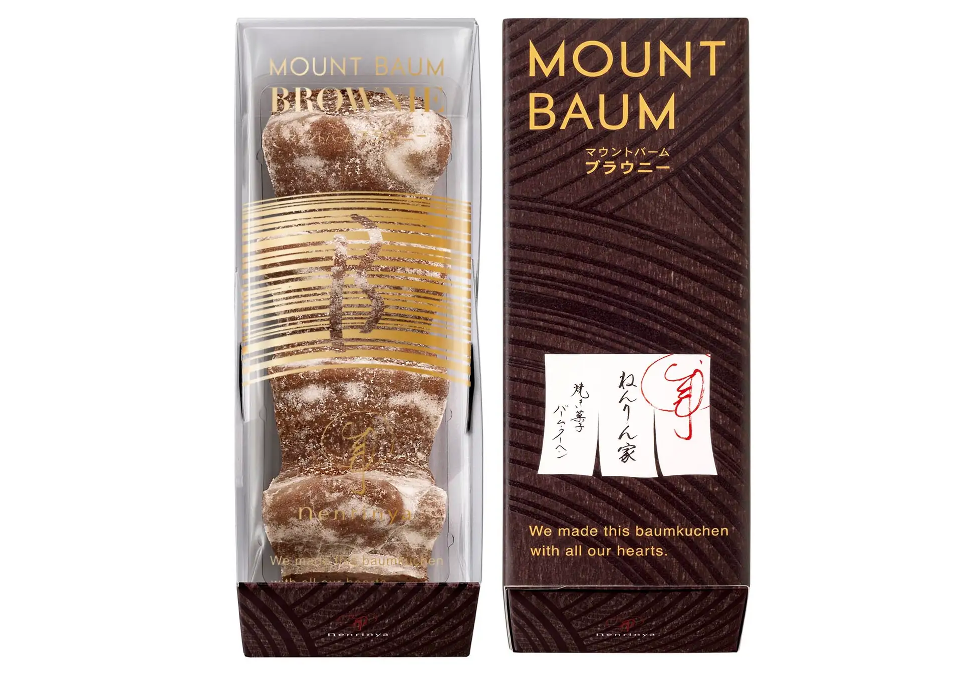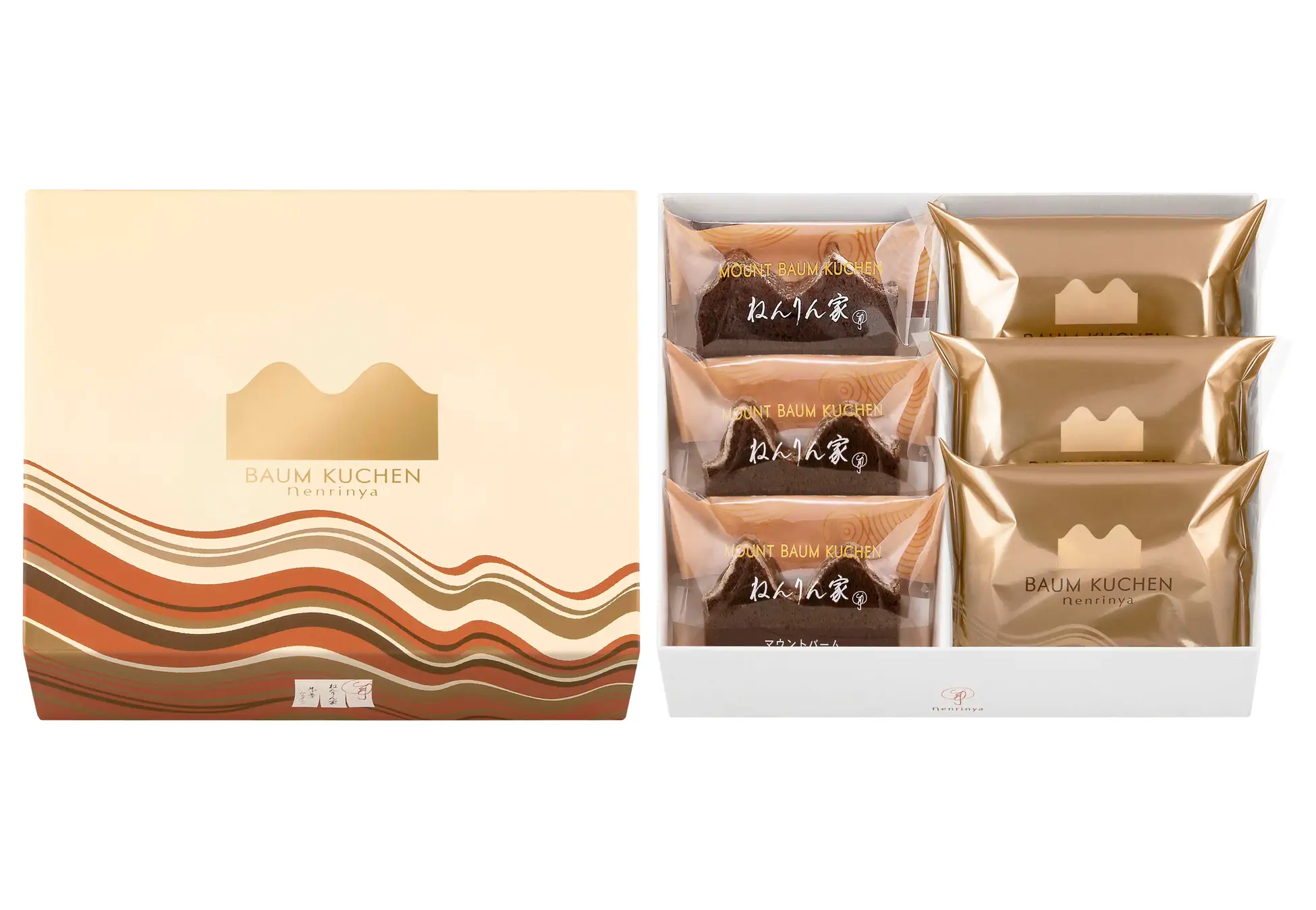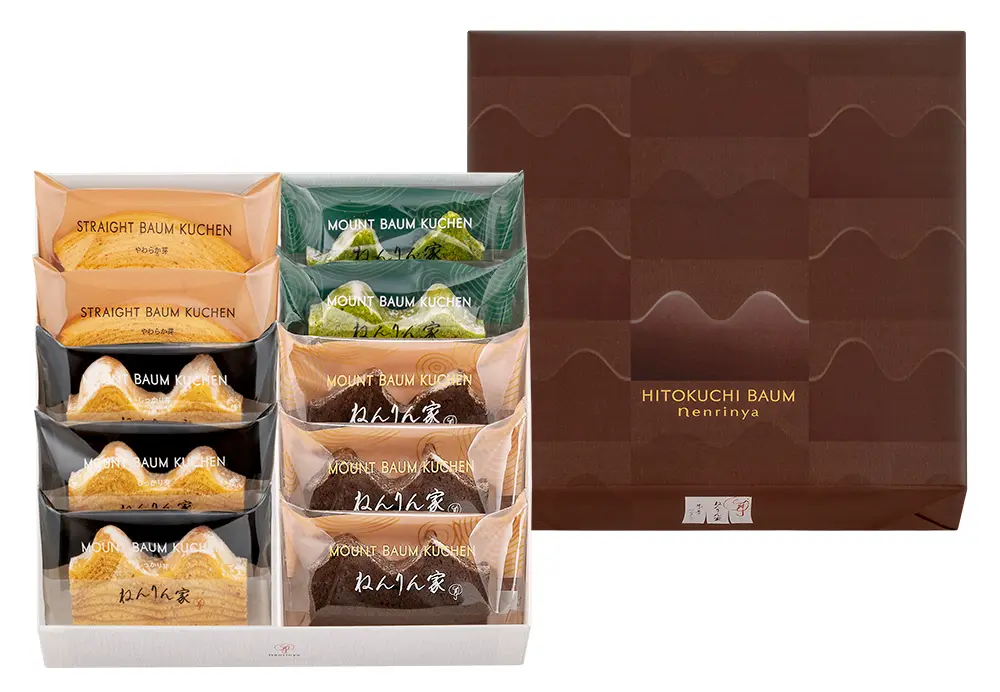 黄金色のバームクーヘン『ひとくちマウントバーム〈ゴールドショコラ〉』と冬の定番『マウントバーム ブラウニー』を一緒に楽しめる詰合せ。ねんりん家の冬限定品を堪能してください。