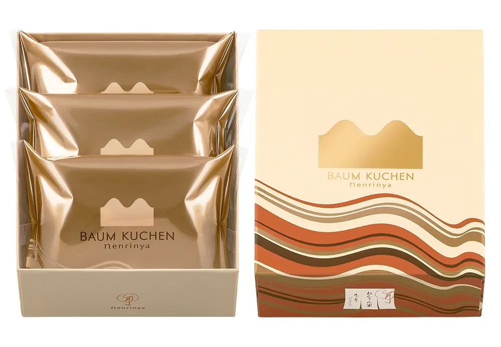 丁寧に焦がした砂糖とミルク。ひと手間かけた材料から生まれたゴールドショコラ。まるでキャラメルのように、⾹ばしくコク深い味わいをお楽しみいただけます。生地は、ねんりん家の代表作『マウントバーム しっかり芽』。⼀層⼀層繊細に焼きあげて、中はしっとり熟成。濃厚なバタ―風味のバームクーヘンにゴールドショコラをとろりとかけた、特別な一品です。