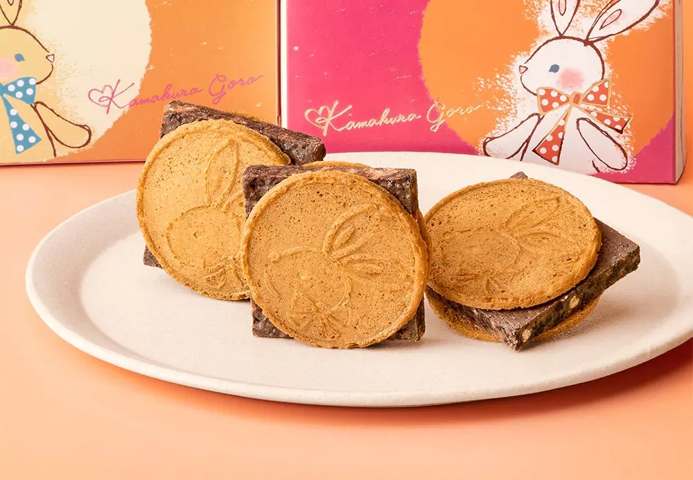 古都鎌倉・小町通りに本店をかまえる「鎌倉五郎」。愛らしいうさぎ印でおなじみの銘菓『鎌倉半月』をはじめ、幅広い年代に愛される味わいと可憐な風情の鎌倉菓子で人気です。そんな「鎌倉五郎本店」の“満月スイーツ”『鎌倉チョコサンドだょ』から、バレンタインシーズン限定パッケージが登場いたします。