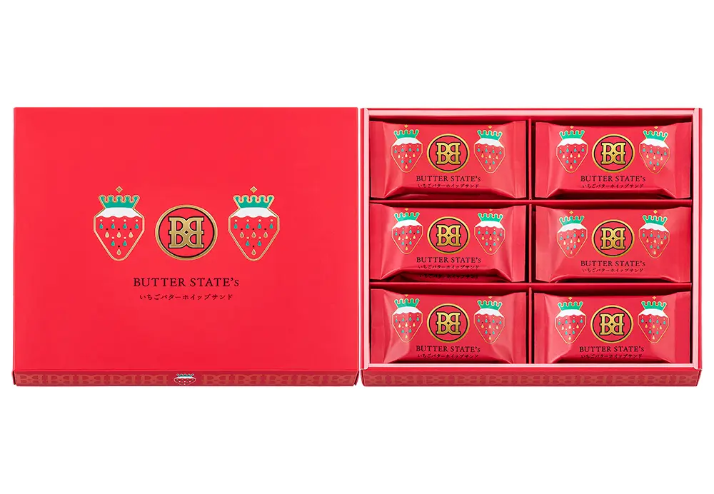 2021年グランドオープン以来 累計1000万個販売を突破した東京発のバタースイーツ専門店「バターステイツ by銀のぶどう」。バターを極限までたっぷりと練りこんで焼き上げた代表作『バターステイツクッキー』をはじめ、様々なバタースイーツを手がけています。そんな「バターステイツ by銀のぶどう」から、春限定の『いちごバターホイップサンド』が新登場。ホワイトデーや春の贈り物にぴったりな“バター×苺”の新作スイーツをぜひお楽しみください。