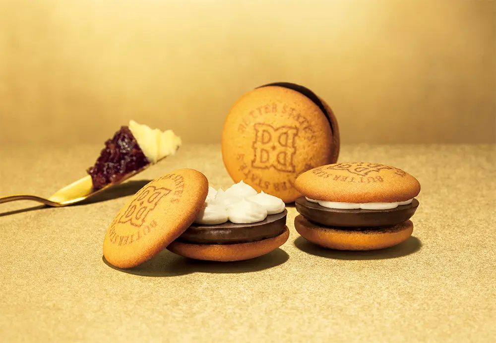 名古屋の美食「あんバター」がとっておきの大人のご馳走に。こだわりはまるであんバターどらやきのようなしっとり生食感。炊きたての柔らかさにこだわった自家製小倉あんに、ふんわりとバターホイップショコラを絞り、しっとり食感の発酵バタークッキーでサンドしました。隠し味のゲランドの塩があんこの甘さを引き立てます。バタースイーツ専門店だからこそ生まれた、“バター×あんこ”の最強タッグの味わいをぜひ召しあがりください。