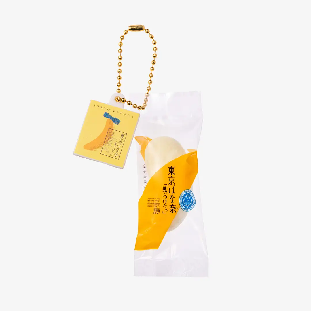 『東京ばな奈』の個包装を再現し、8個入のパッケージデザインのプレートを合わせてボールチェーン付きのチャームにしたカプセルトイ専用アイテムが誕生しました。『東京ばな奈』のふわふわの手触りにもこだわって、スクイーズにすることで再現。その本物そっくりな見た目や感触に驚くこと間違いありません。