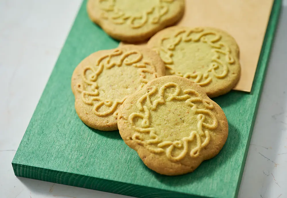 【内 容】チューリップローズ (バター・チーズ 各1個、ストロベリーバター 2個)、グランチーズショコラサンド 6枚、ピスタチオバターサブレ 2個