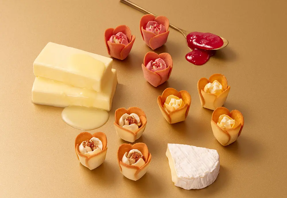 バターとチーズの甘い香りに溢れた美味しい花屋へようこそ。香ばしいチューリップの花びらの中にとろけるローズが咲いた世界でここだけの花を贈ります。みんなを笑顔にする花のようなスイーツは、自分へのとっておきのご褒美に、贈り物にぴったりの一品。プレミアムな東京みやげとしても注目です。