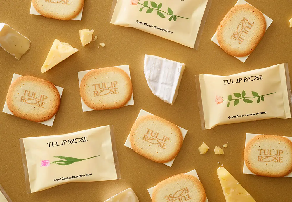バターとチーズの香り溢れる美味しい花屋「TOKYO TULIP ROSE」。香ばしいチューリップの花びらラングドシャクッキーの中に、とろける生食感ショコラクリームのローズが咲いた代表作『チューリップローズ』は、累計5000万個販売を突破しました。