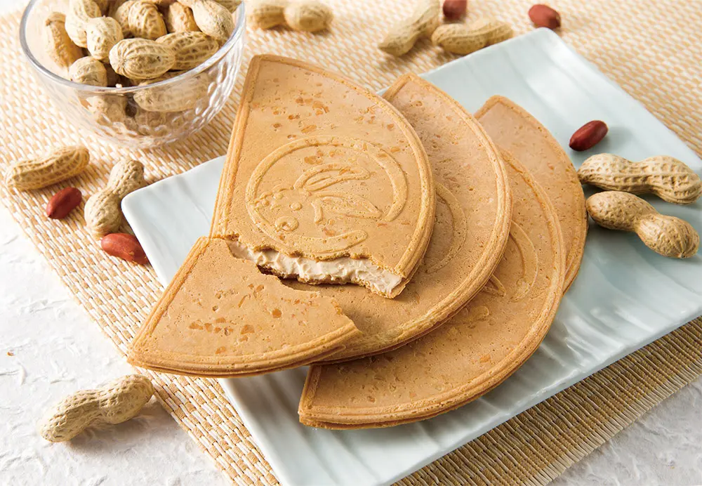 毎年楽しみにしている方も多い『鎌倉ぴーナッツ半月』が今年も登場しました!ザクッとした厚焼きのゴーフレットとコクのあるピーナッツクリーム。そのどちらにも使用した“ローストピーナッツ”が、極上の香ばしさの決め手です。外から中までピーナッツどっさり。ぽりぽりシャキシャキお⼝で鳴らす、夏のおともの半⽉です。