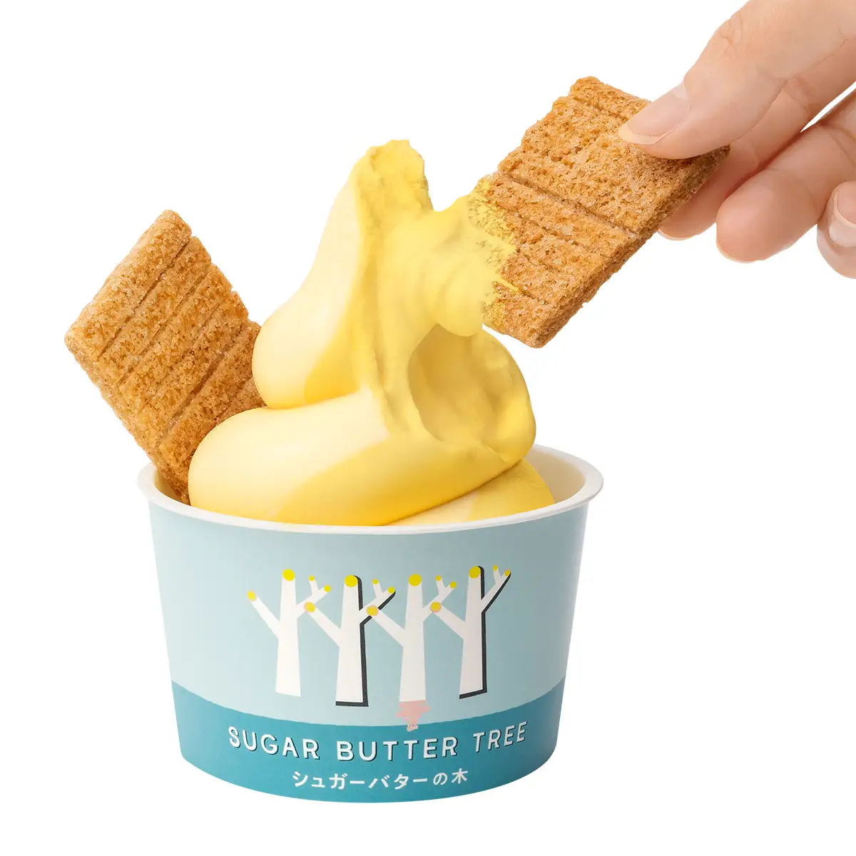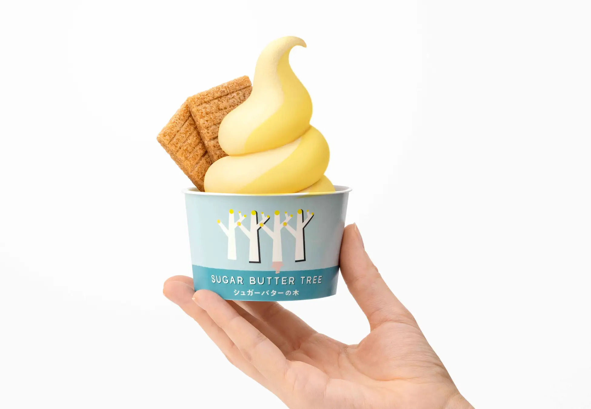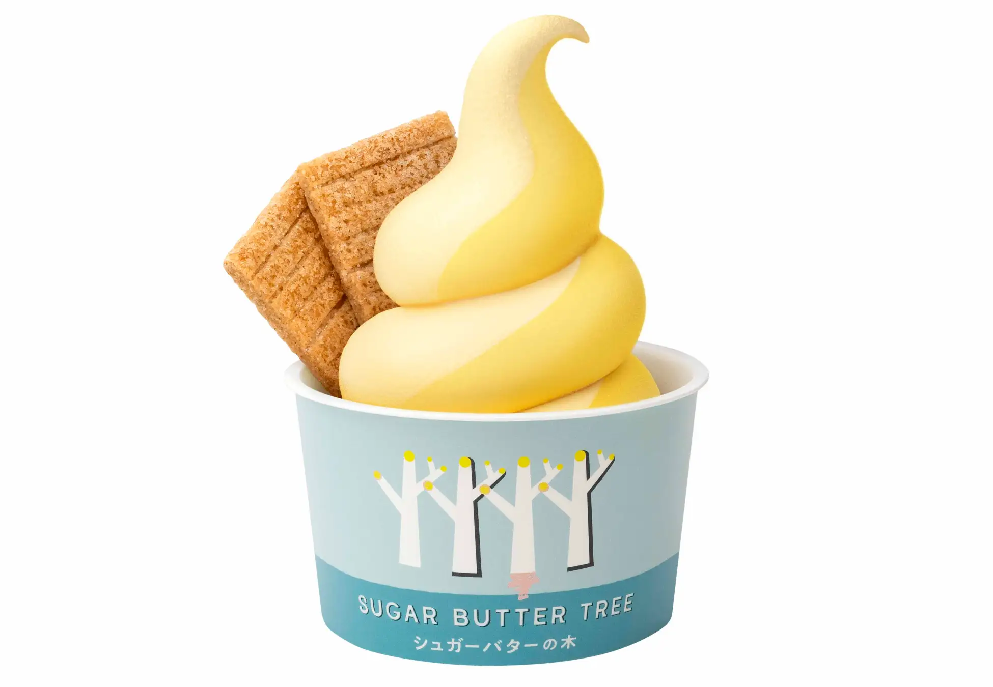 2010年に誕生したバターシリアルスイーツ専門店「シュガーバターの木」。昨年販売した『シュガーバターの木 ソフトクリーム』は、SNS上でも「ミルキーで美味しい!」「ザクふわ食感が唯一無二!」「激ウマすぎ」と大きな話題となりました。そんな『シュガーバターの木 ソフトクリーム』から、誕生1周年を記念した新味が登場!九州産のさつま芋にバターや生クリームを練りこんで焼き上げ、こだわりの美味しさで福岡の名物土産として愛され続ける「ロイヤルのスイートポテト」とコラボレーションした『シュガーバターの木 ソフトクリーム ロイヤルのスイートポテト風』を新発売します。