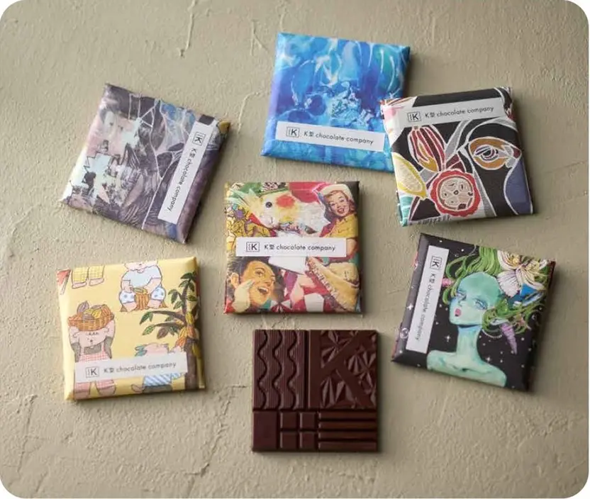 広島・尾道のbean to barチョコレートブランドがリブランディングし、新ブランドとなって誕生!ひと口で心が動く、チョコレートでそんな“感じる”体験を。そんな物語を包み紙にも込めて、様ざまなアーティストが世界観を表現しました。