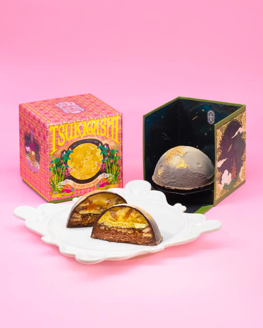 実際の月の地形データを元に製作した、食べられる天体”月菓子”が新たに登場。かぐや姫の故郷をイメージした幻想的な味わいのチョコレート菓子です。金彫が施された薄いチョコレートの月面の下には、杏のガナッシュやアールグレイガナッシュ、スライスアーモンドなどが複雑に組み合わさり、何層にも重なります。重厚なチョコレートケーキのため、2~3名様でも美味しくお召し上がりいただけます。