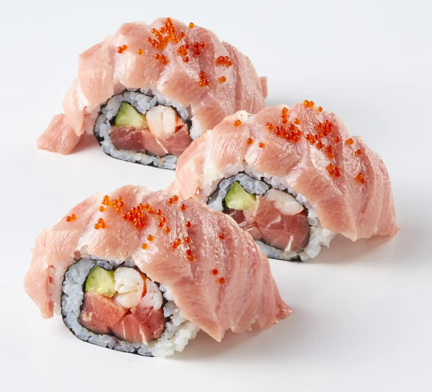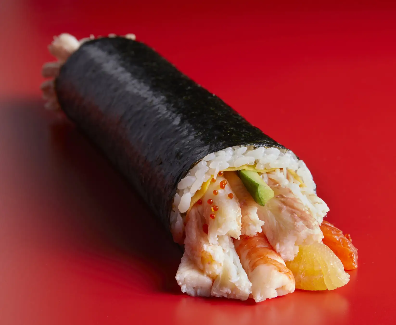 本マグロの大トロ、愛媛県産の戸島一番ブリに愛鯛、北海道産いくらに加え、本ズワイガニ、鰻、数の子、ボイルえびも入れて、8種の具材を豪快に詰めました。