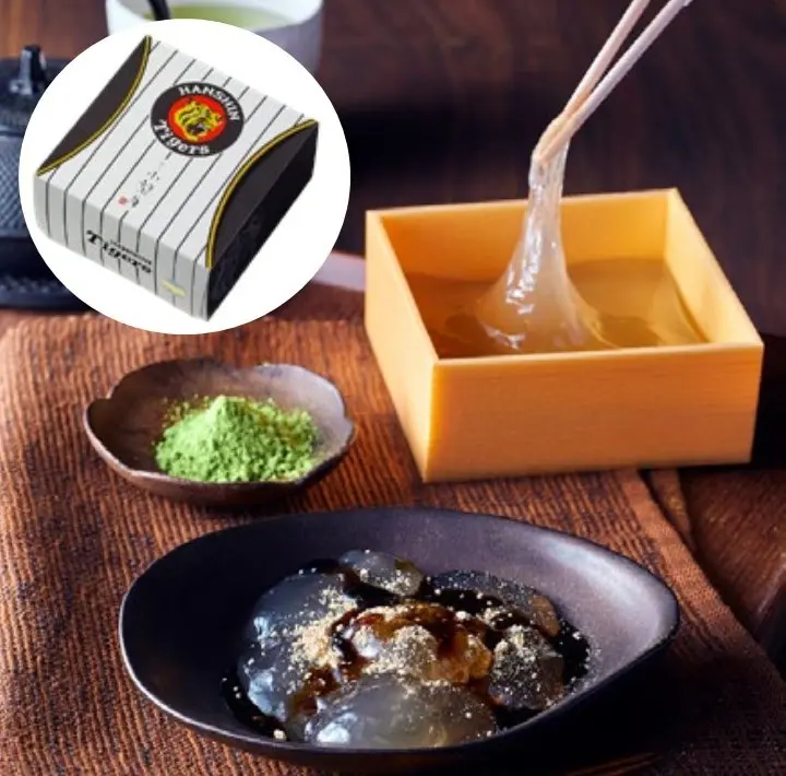 驚きの柔らかさと上品な甘さが人気のわらび餅に、抹茶きなこをプラス。阪神タイガースバージョンだけの特別なおいしさです。