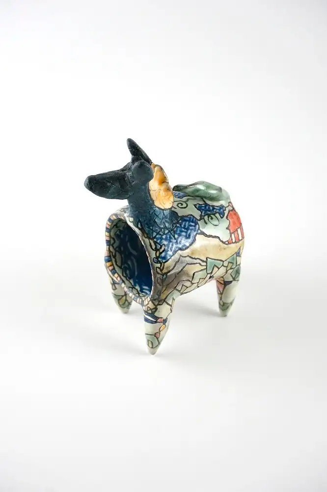 「馬形馬目紋酒呑」(陶器、約奥行5×幅8×高さ11cm)38,500円(税込)
