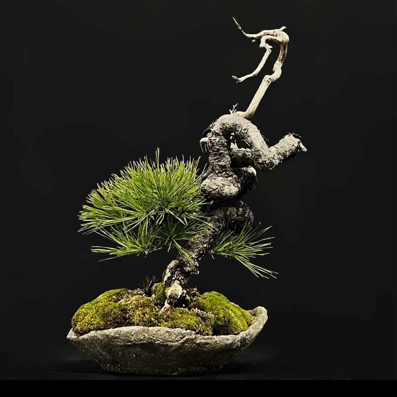 樹齢約30年。動きのある模様から下枝で作られた石附赤松です。