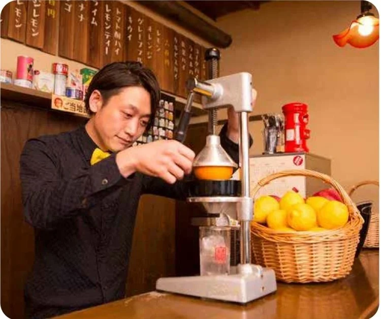 DJが選曲する心地よい音楽と旬の果実を使ったお酒が人気のお店です。農農園を訪れて素材の良さに惚れ込んだ愛媛県産柑橘のサワーを、ぜひからあげと一緒にお楽しみください。