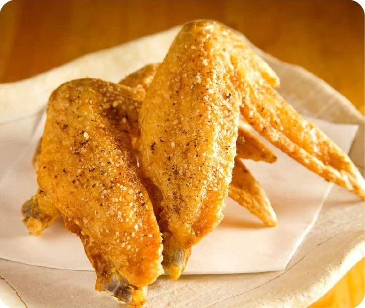 塩の力で素材の旨みと香りを最大限に引き出した塩からあげ。にんにくの加工・配合を工夫し、奥深い風味で上品な味の特製塩だれに丸一日漬け込み揚げた、絶妙な味わい。
