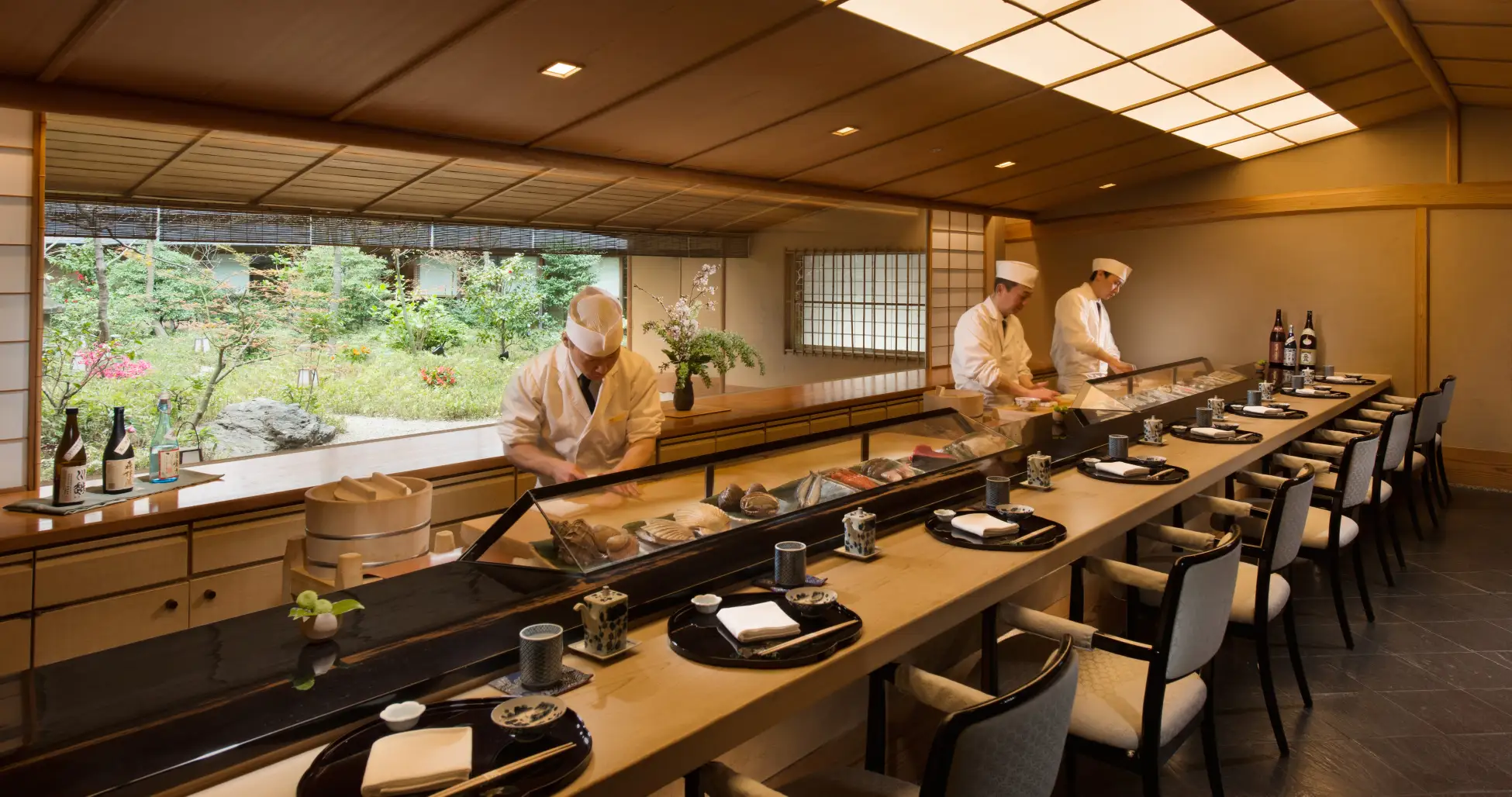 ■ 美しい庭園を望む、カウンターの特等席