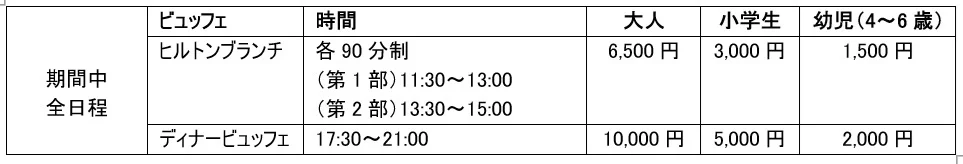 ※各ビュッフェともに3歳以下は無料です