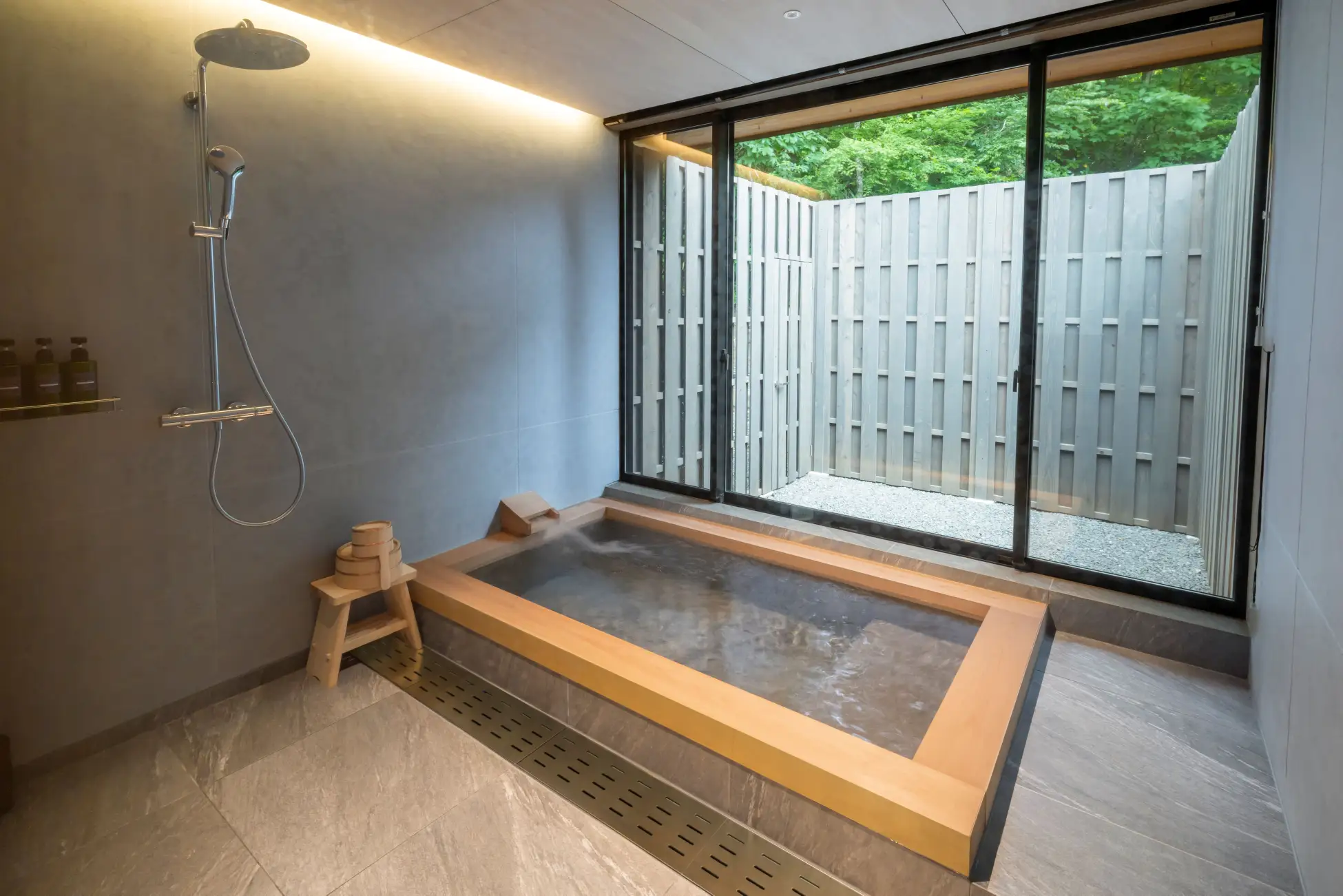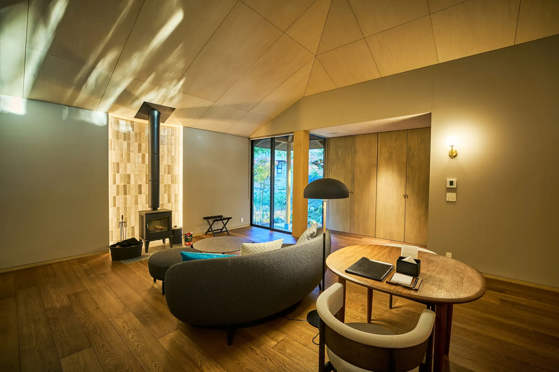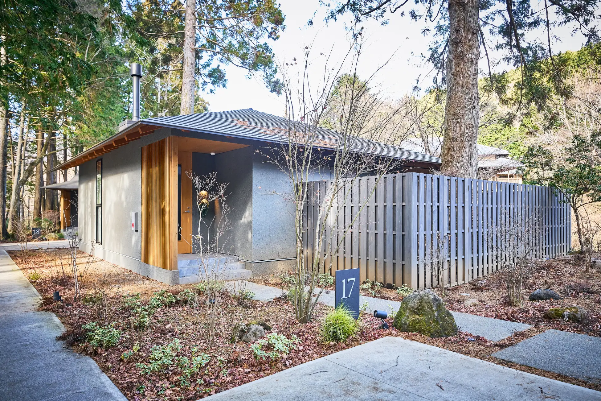 木立の中に立つ山小屋のような空間がコンセプトの3つのヴィラは、山の傾斜に沿って段々に部屋が連なるヴィラや、山肌に囲われた庭を持つヴィラなど、客室が周りの地形の一部として自然につながっていく、自然と共存する空間として新設。プライベートな庭を介し四季の移り変わりを通して、箱根の豊かな自然との対話をお楽しみいただけます。