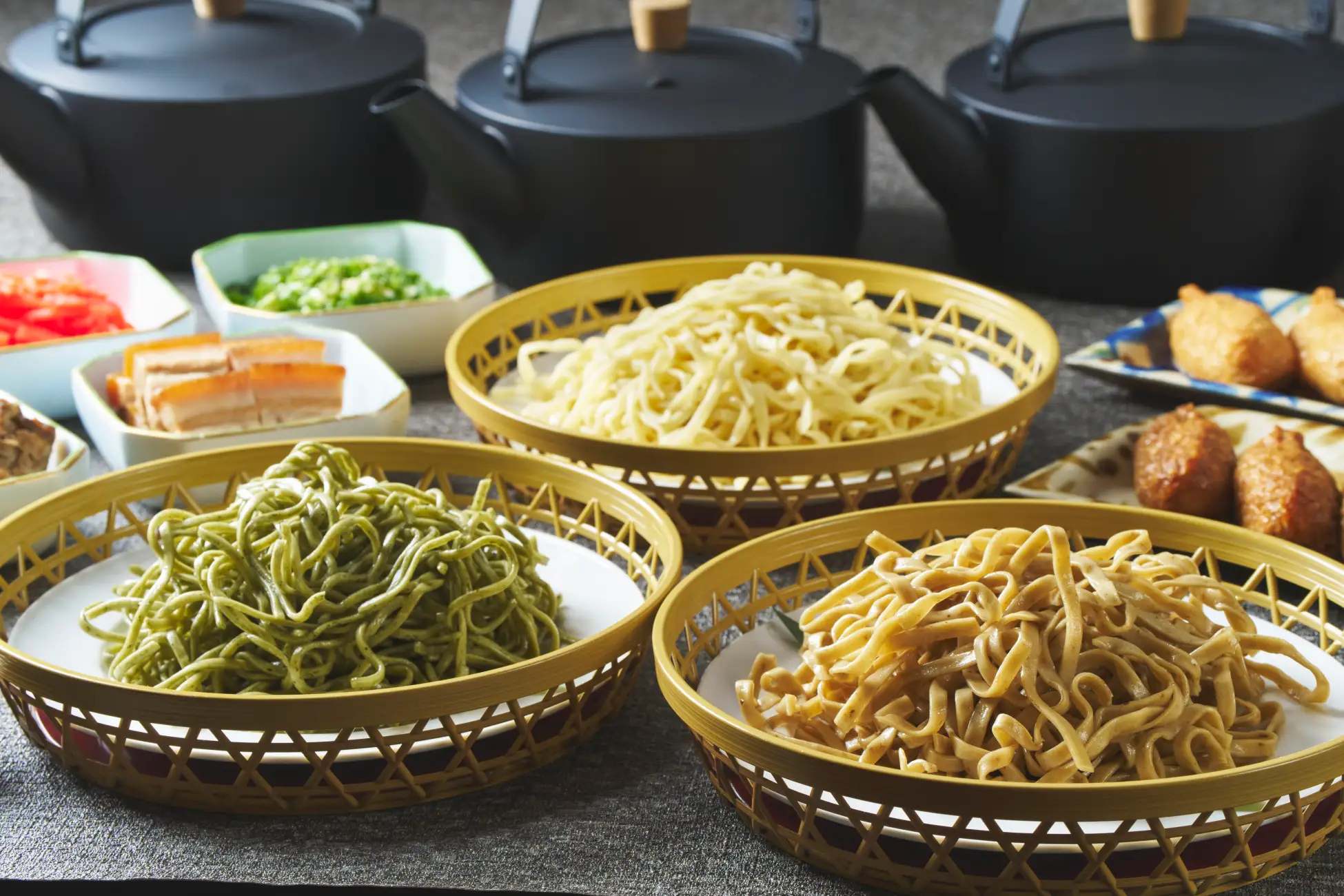 「本日のチャンプルー」では、定番の「ゴーヤチャンプルー」や「クーブイリチー(クーブ=昆布、イリチー=炒め物)」など、日替わりで沖縄のチャンプルー文化をご堪能いただけます。「沖縄そばコーナー」ではかつおぶしを使用した豚骨ベースのスタンダードな沖縄そばに加え、県産もずくを練り込んだ「もずく麺」や、ほのかな苦みが広がる「よもぎ麺」をご用意。中華スープや洋風スープと合わせたオリジナルの沖縄そばをお楽しみいただけます。
