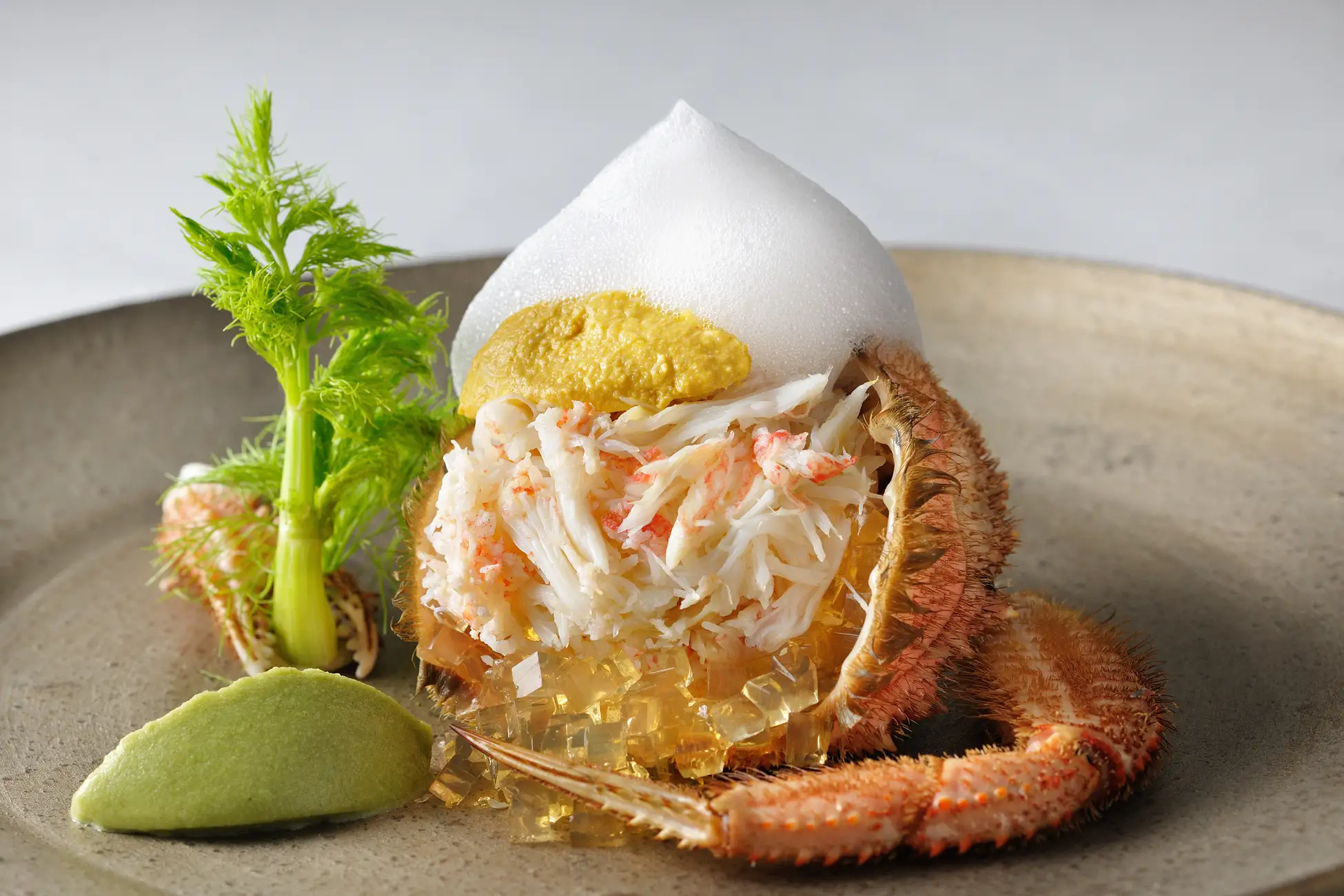 冷前菜:「泡で包んだ蟹とフィノッキオの爽やかな香り」