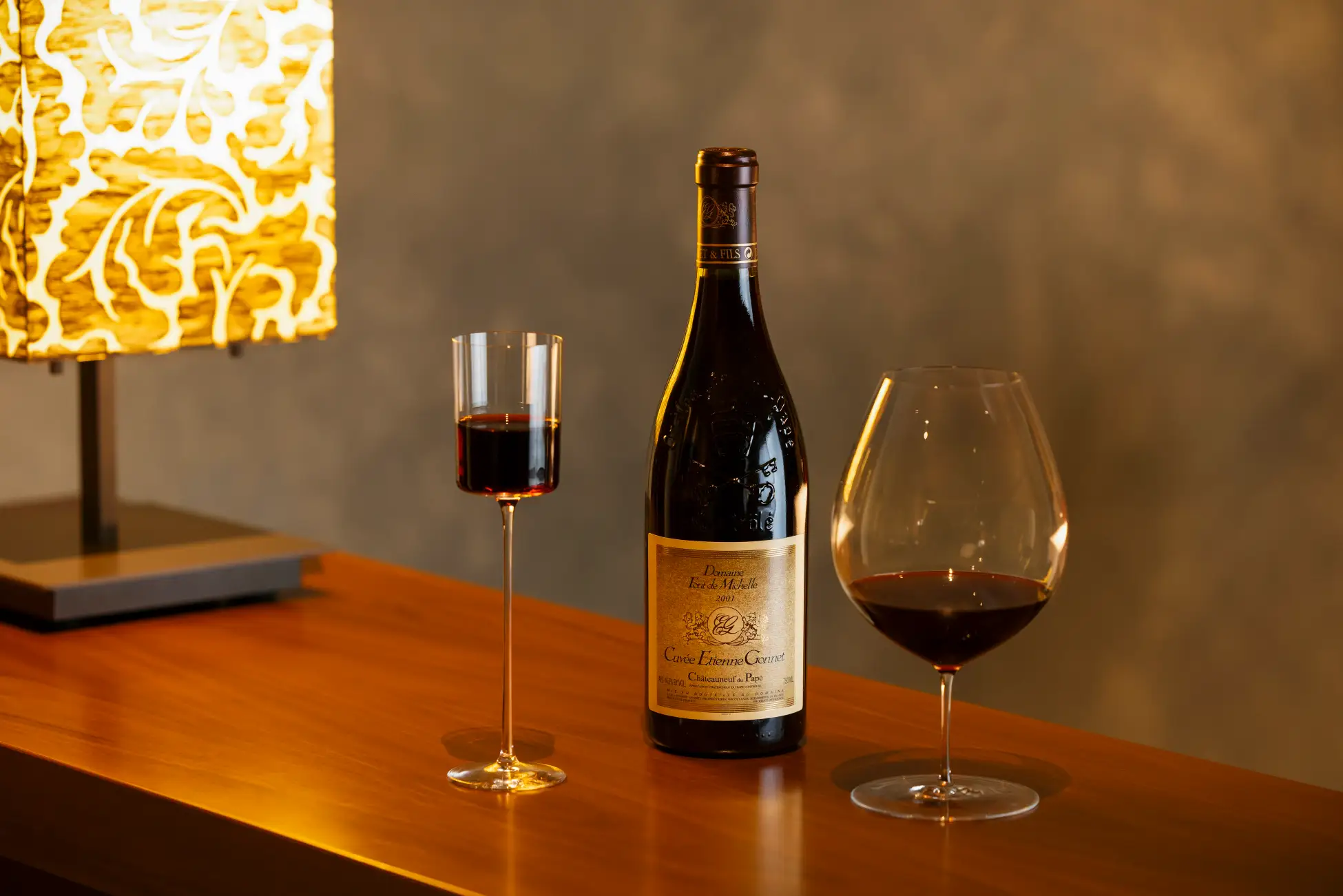 複雑で多層的なパテ・ド・ロワをさらに深く味わえる、ワインとモクテル(ノンアルコールカクテル)を用意しています。ワインは、24年の歳月を経て熟成されたシャトーヌフ・デュ・パプ 2001年。熟成が生んだ紅茶や土のような複雑な香りが、ジビエの豊かな風味と見事に溶け合います。モクテルは、グロゼイユやブドウ、フランボワーズがベース。料理に使用したトリュフの華やかな香りと同調させるという繊細な設計により、落ち着いた酸味と渋みとともに、料理との一体感を楽しめます。