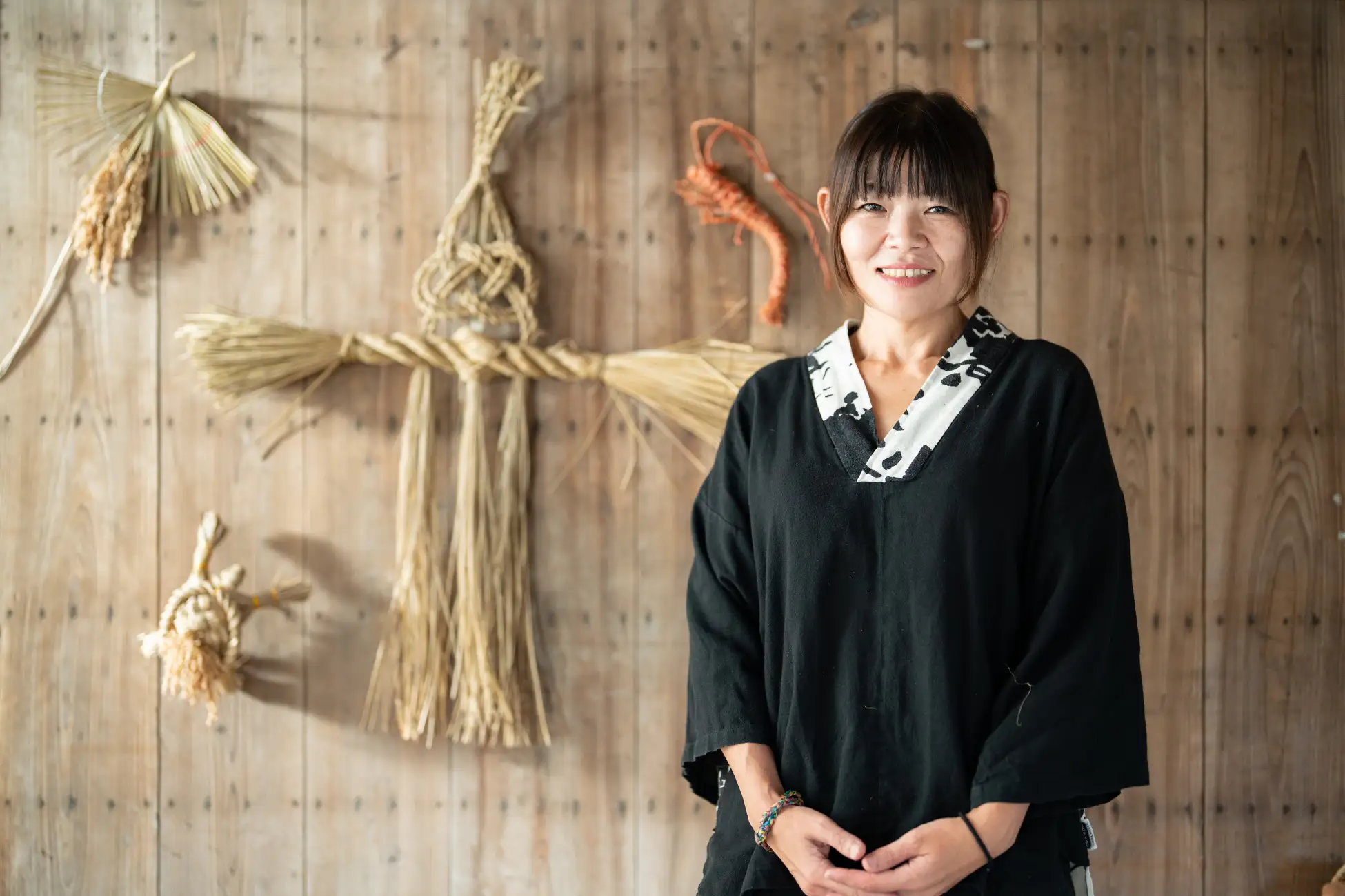 元々は畳表の材料として使われてきた七島藺だが、「昔ながらの工芸を残しつつ、もっと身近に使えるものを」という想いから、アクセサリーやキッチン用品、オブジェなど現代の暮らしに溶け込む新しい作品を次々と生み出す。自身の工房「七島藺工房 ななつむぎ」を拠点に活動。