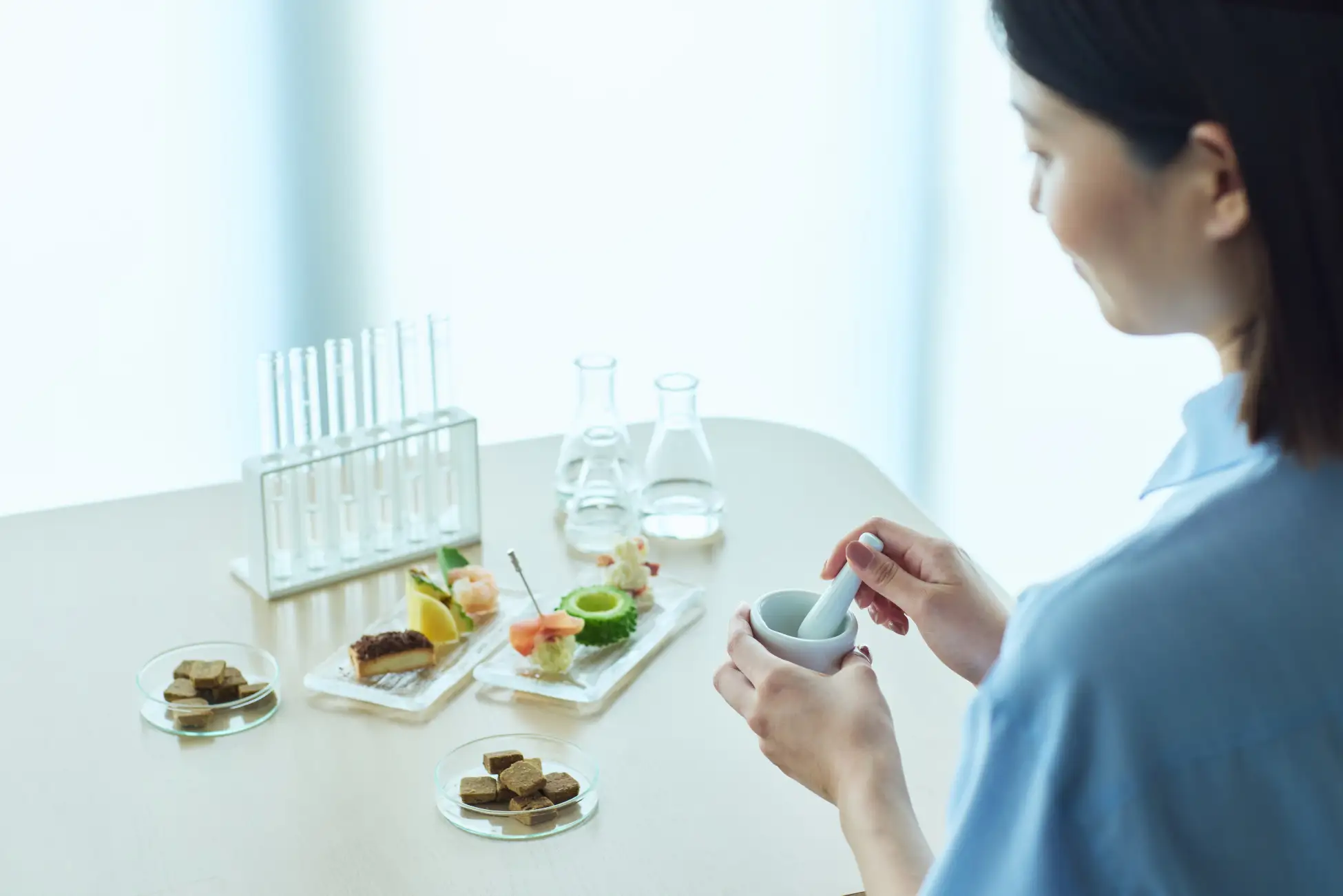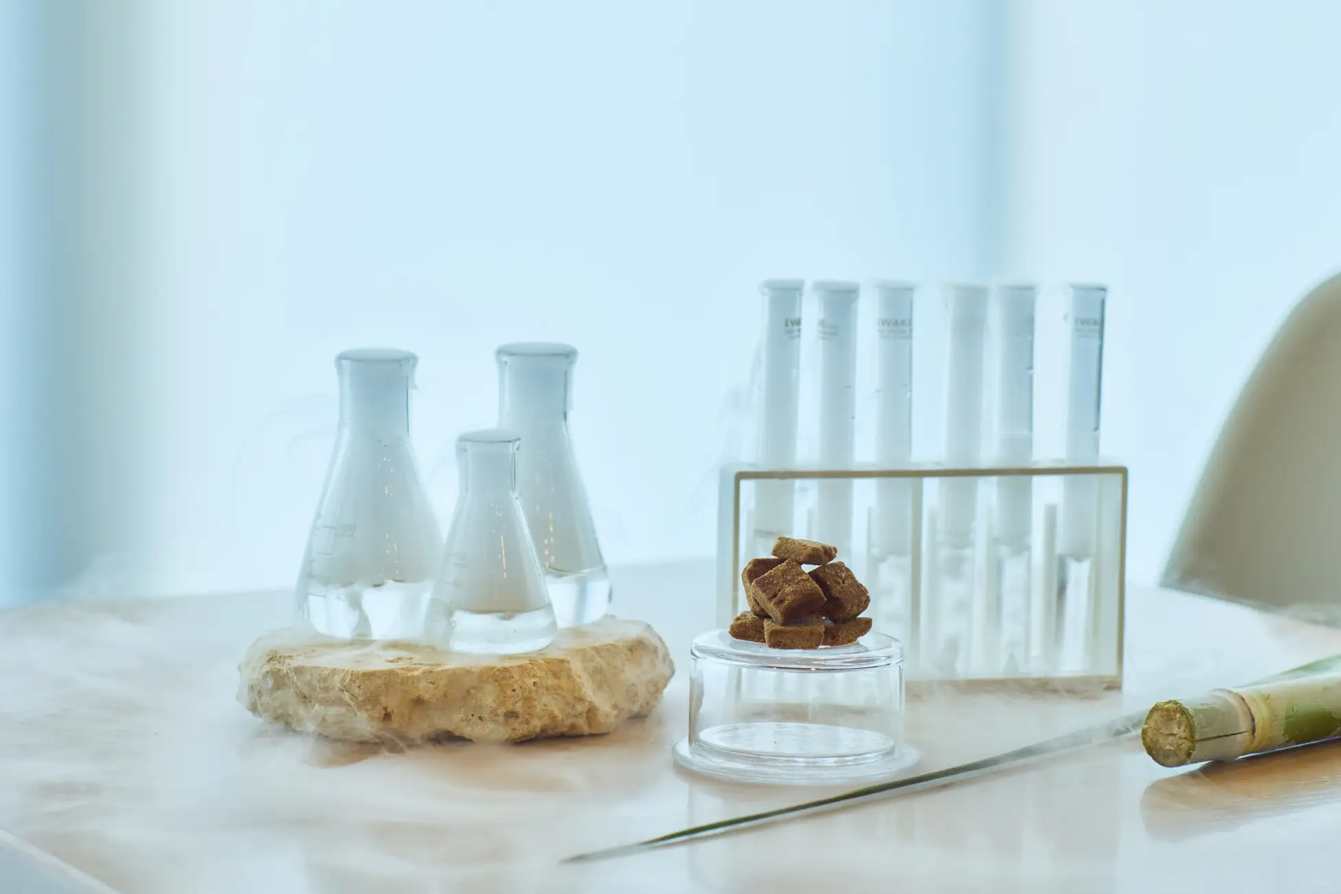 リゾナーレ小浜島が位置する小浜島は、黒糖の製糖が盛んな島です。地域食品ブランド表示基準「本場の本物」に認定された「沖縄黒糖®」を生産する8島にも選ばれており、黒糖は、小浜島を支える大切な産業であり、島を代表する特産品です。(*1)身近な食材として親しまれていますが、その一方で、産地によって異なる黒糖の風味や食感、そして料理とのペアリングによって広がる味わいの多様性は、まだあまり知られていません。「観察・仮説・検証」という研究のプロセスを辿る「ラボ」というコンセプトのもと、ペアリングで楽しみながら、沖縄黒糖の新たな魅力を知ってほしいという思いで、本アクティビティを企画しました。