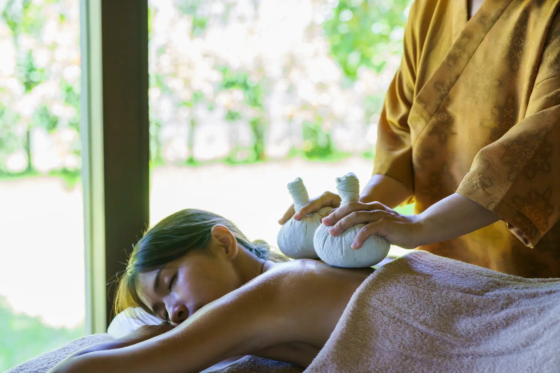 上質な睡眠には、身体をあたためたり、リラックスをすることが大切です。星のや沖縄のスパトリートメント「月」では、月桃の香りと肌触りが心地よい「月桃玉」で睡眠前の身体をほぐします。さらに、滞在中のパジャマには、着ることで血行促進作用が働き、筋肉のコリや冷えの改善に効果のあるセルフメディケーションウェア(*4)を用意しました。睡眠の前後には、施設の庭で採取したハーブで作るオリジナルハーブティーで、快適な眠りと爽やかな目覚めを迎えられます。