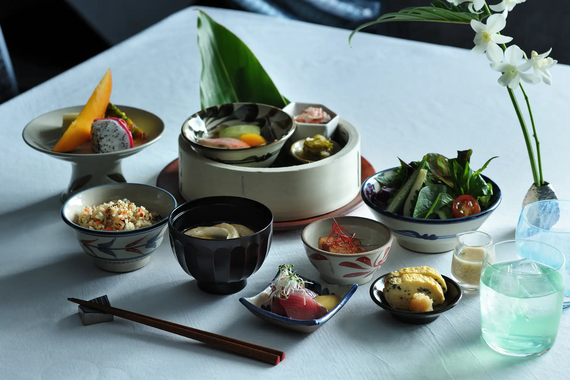 滞在スケジュールにあわせた食事は、良質な眠りに導くといわれる、栄養素を含む食材を盛り込みました。朝は、睡眠を促すメラトニンを生成するトリプトファンやマグネシウムを含む「カツオ」や「昆布」を使った琉球朝食。夜には、上質なたんぱく質である「豆腐」や食物繊維豊富な「アーサ(あおさ)」を摂り入れ、消化に良く身体を温める「ゆし豆腐の鍋」を提供します。快適な睡眠へと導く栄養素を知ることで、いつもの暮らしへ繋げます。(*5)