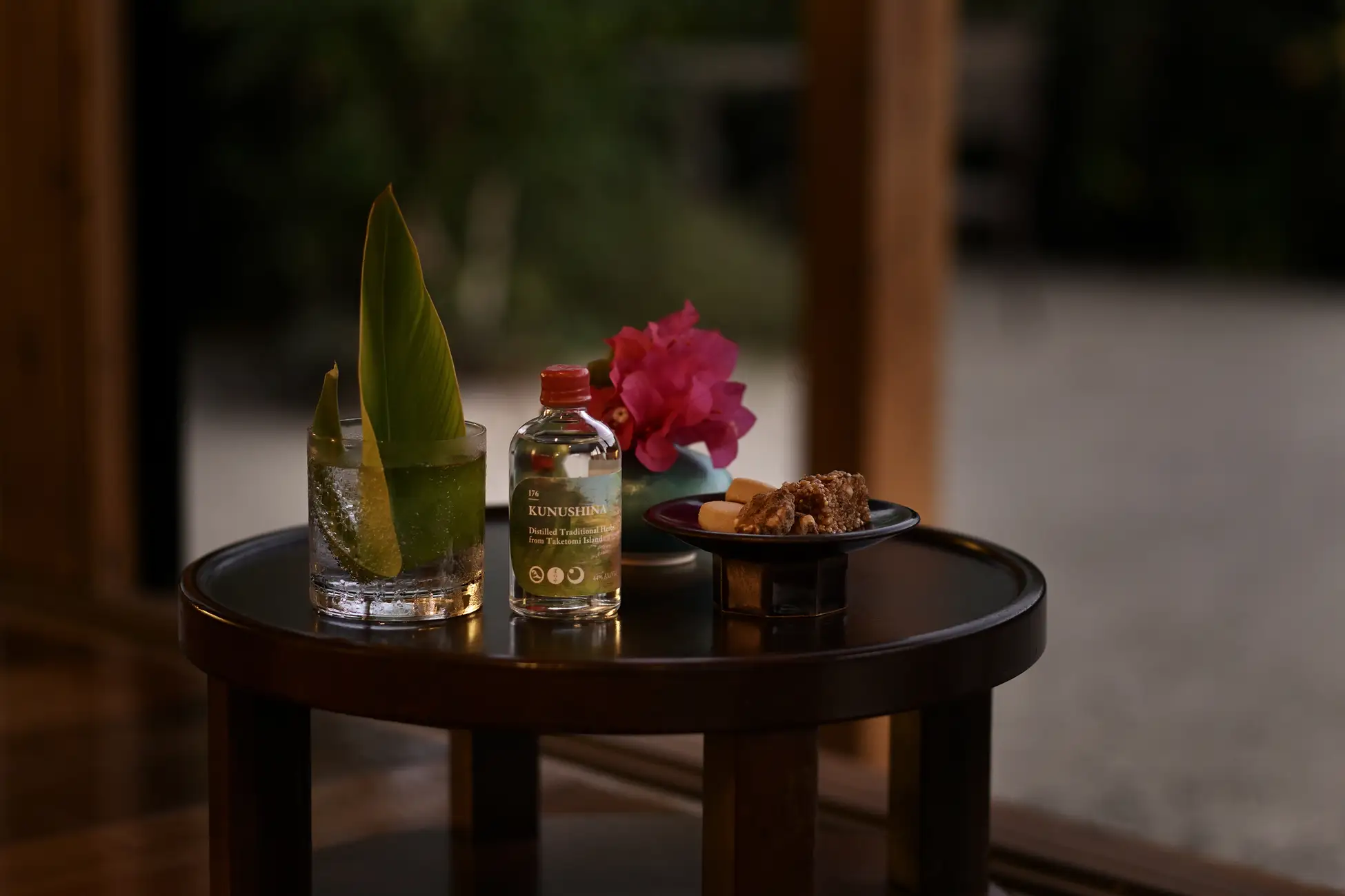 春は暖かい日差しと、島の風が心地よく吹き抜けます。島の方々は、この春の心地よい気候のもと、夕方になると縁側で刻々と変わる空の移ろいを眺め、ゆったりと過ごす贅沢な時間を持っています。その風習に倣い、客室の縁側で、畑のハーブの恵みを感じるオリジナルの蒸留酒「KUNUSHINA」を楽しみます。夕日が沈む前後のアコークロ―(*1)と呼ばれる美しい夕暮れ時 、竹富島のゆったりとした島時間を贅沢に堪能するひとときです。
