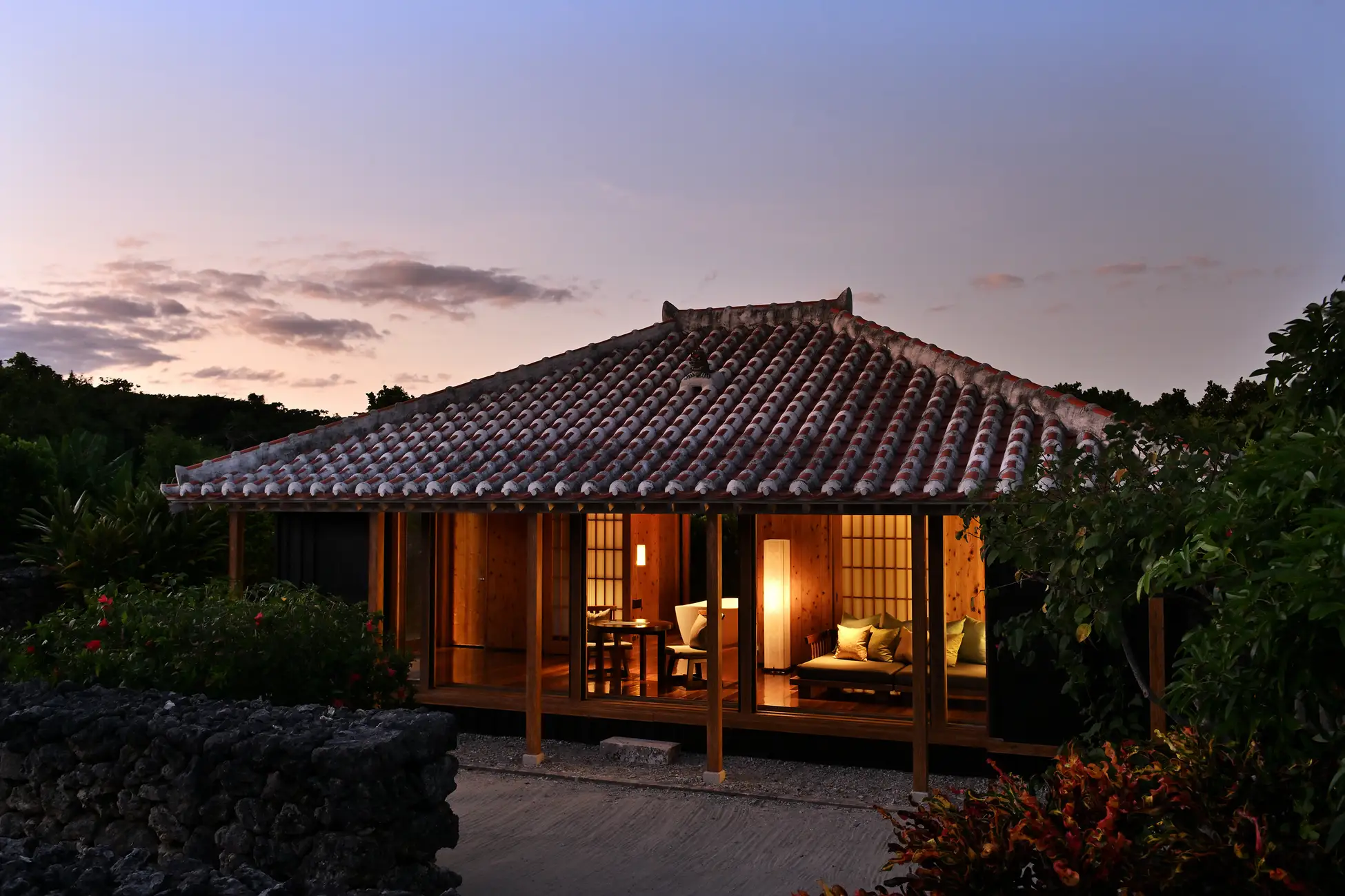 竹富島の東に位置する琉球赤瓦の集落「星のや竹富島」。約2万坪の敷地には、島内の家々と同じように「竹富島景観形成マニュアル」に従い、伝統を尊重して建てた戸建の客室、白砂の路地、プール、見晴台などがあり、沖縄の原風景が広がります。