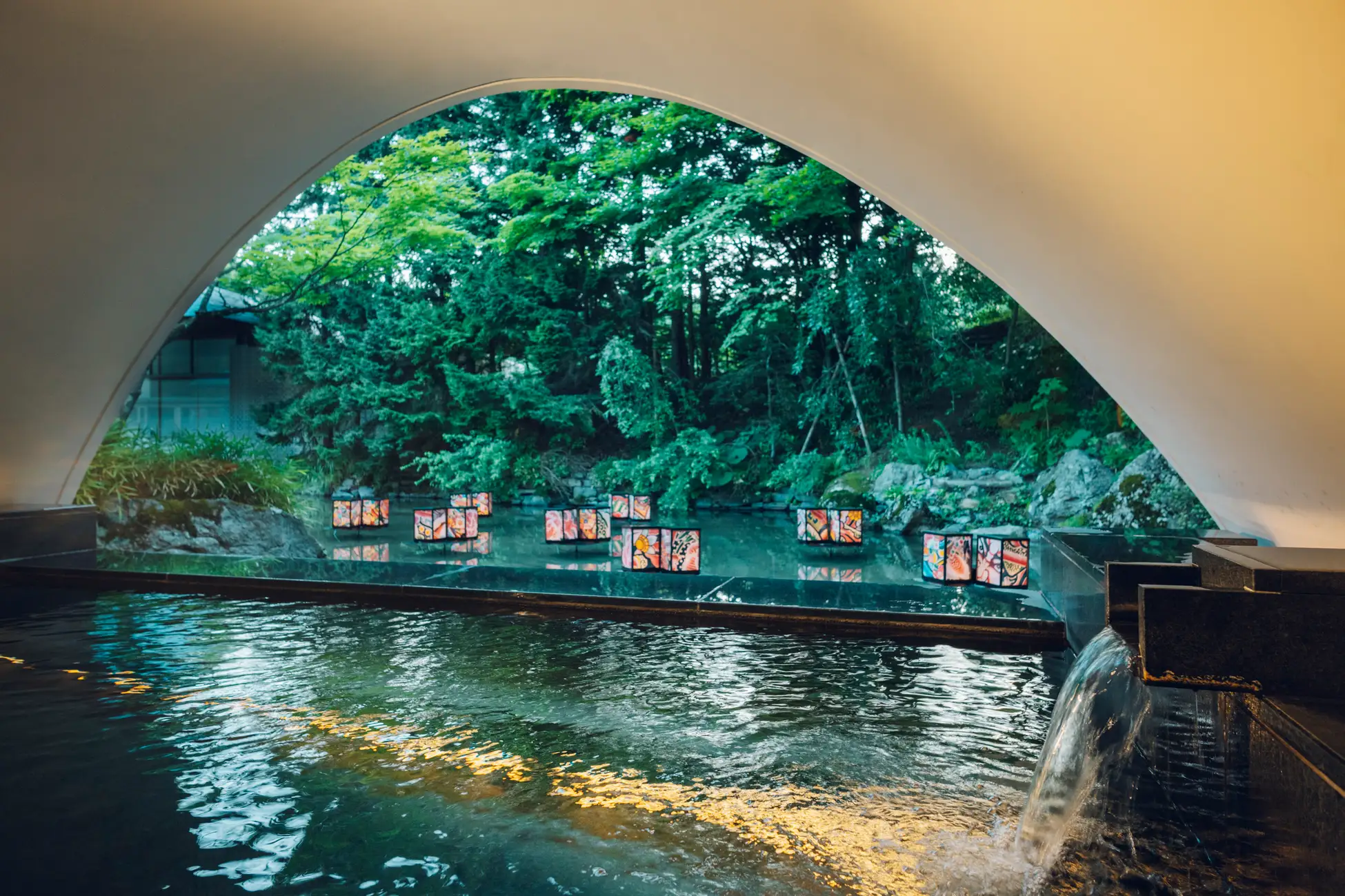 特徴1 伝統工芸品が灯す「花明かり」に包まれる水庭