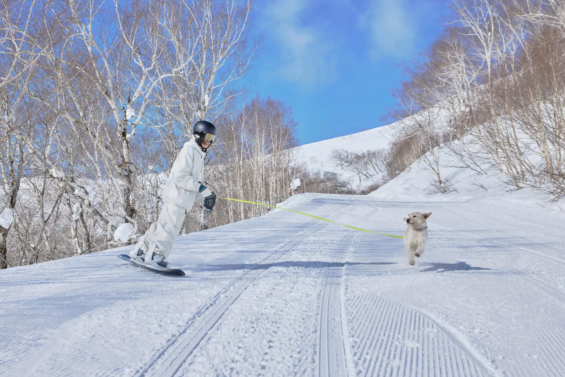 愛犬と一緒にスキー場の4.2kmのコースを滑れる「わんスノーライド4200」や、イベント限定でスノーシューでのお散歩体験ができます。また、愛犬向けのおやつ販売や、リードフック付きの休憩スペースも設置。愛犬連れの方も、愛犬と一緒にイベントを楽しめます。