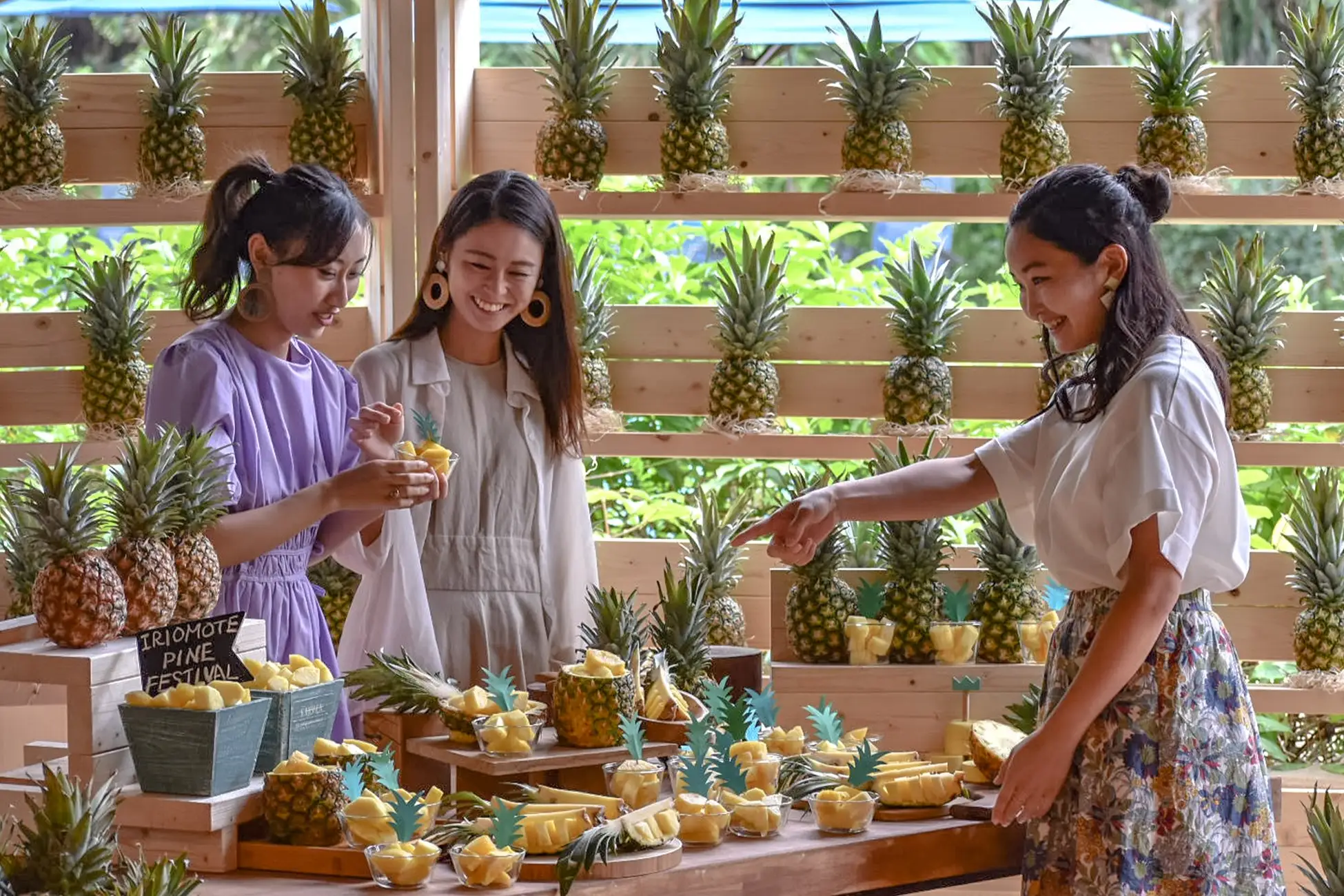 今年は、滞在全体を通してピーチパインをとことん楽しめるスタンプラリーも開催。ピーチパインを味わったり、農家さんと話したり、クイズに挑戦したりすることでスタンプを集められます。さらに、それらのミッションをすべて達成し、農家さんからピーチパイン愛を認められると、ピーチパインの苗のオーナー権を獲得。定期的に成長レポートが届き、2年後には成長したパインを堪能できます。西表島のピーチパインについてより深く知り、関わることができる体験です。