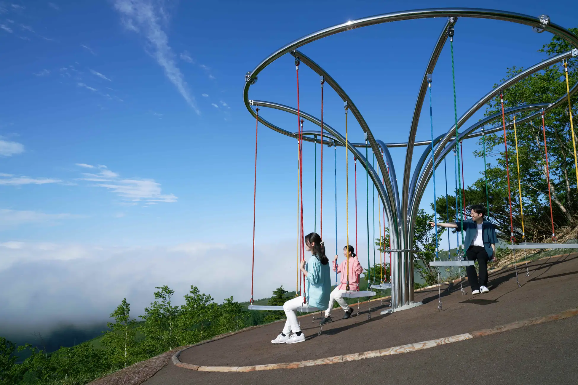 をはじめさまざまな雲海を楽しめる展望施設です 。山頂までは、片道約13分の雲海ゴンドラでアクセスできます 。ゴンドラ整備のスタッフにとって見慣れた風景だった雲海を、お客様にも楽しんでいただきたいという思いから、2005年に開業し、以来170万人以上が訪れています。2021年には3階建てのメインデッキがリニューアルされ、より広大な景色を眺めることができるようになりました。また、雲海テラスでの9つの過ごし方を提案する「Cloud9(クラウドナイン)計画」のもと、山全体を散策しながら、ユニークな展望スポットを巡ることで、標高や角度の異なる地点から雲海や雄大な自然を楽しむことができます 。英語で「この上ない幸せ」を意味する“I am on cloud nine.”に由来しており、2025年11月時点で7つのスポットが完成し、今後さらに増える予定です 。山道に沿って設置された7つのユニークな展望スポットを巡り、思い思いに雲海を眺めることができます 。