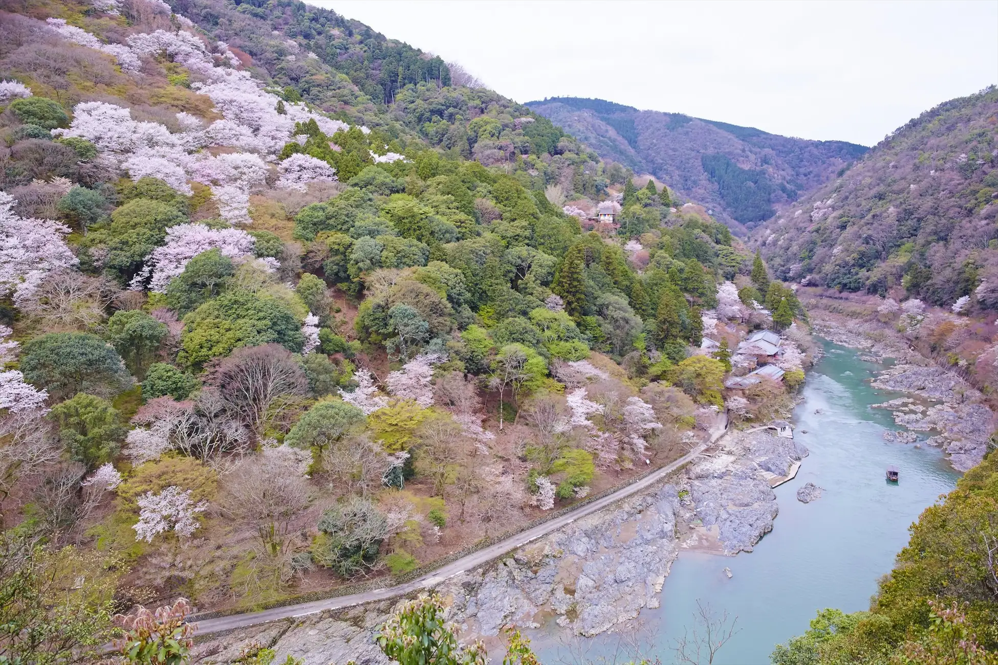 星のや京都が位置する嵐山は「日本さくら名所100選」(*1)のひとつに選定されており、桜の時期には観光客で賑わいます。一方で、星のや京都は嵐山の名所・渡月橋から約1km離れた静かな渓谷に位置しており、喧騒から離れてゆっくりと桜を愛でられる唯一無二の場所です。つぼみ、満開の花、散りゆく花吹雪から花筏(はないかだ)まで、刻々と移り変わる自然の情景を間近で感じ、心ゆくまで満たされる時間を過ごしてほしいという想いから、この特等席を提案します。