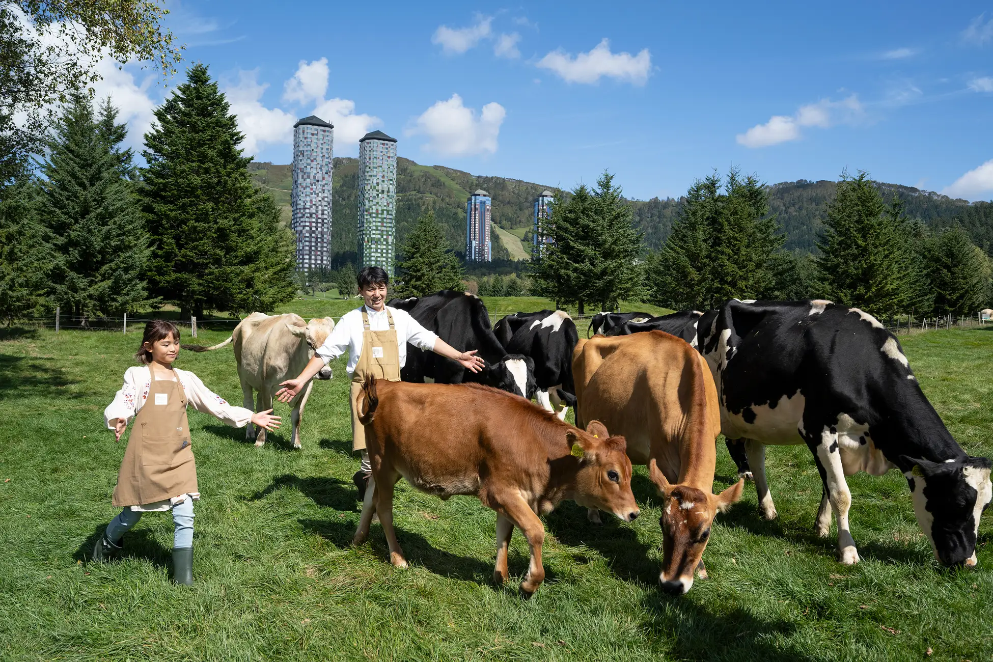 約100ヘクタールの広大な「ファームエリア」で、牛の個性や習性に加え、種類による牛乳の味の違いなどを学べるアクティビティです。ここでは、個体ごとに味の特徴が異なる「トマム牛乳」の飲み比べを体験したり、愛情を込めて牛の世話をしているガイドとともに牛追いを行ったりします。広大な自然に囲まれ、朝の爽やかな風を感じながら、牛や牛乳について深く知ることができる体験です。