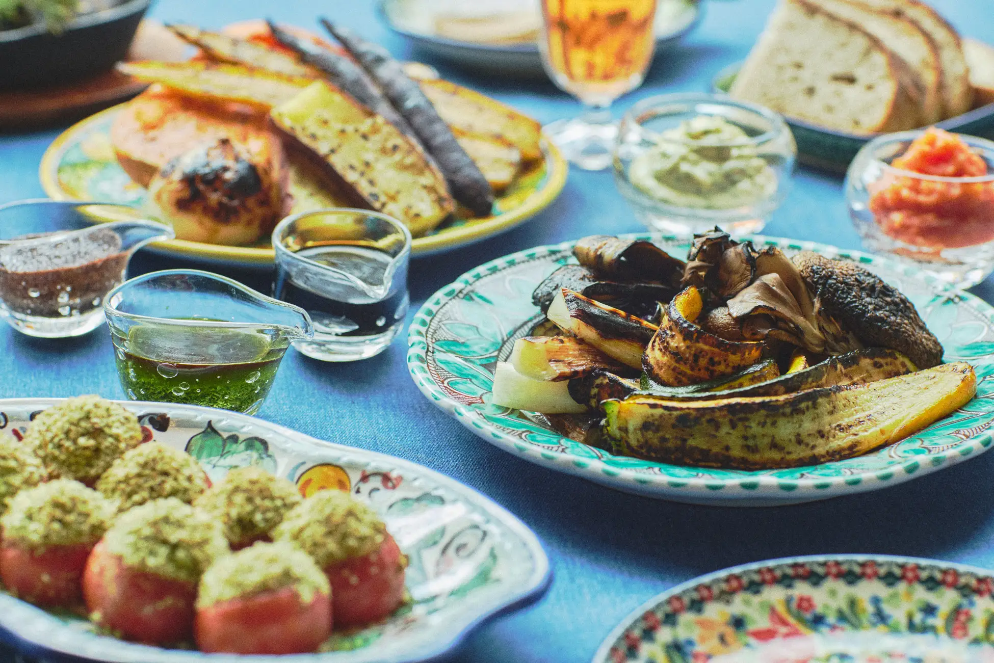 収穫した野菜は、田んぼの畔に設えた屋台でシェフが炭火で焼き上げ、素材の甘みと旨味を引き出します。今年は、自ら収穫したハーブをすり鉢ですり、香りを引き立たせて作るハーブティーが新登場。野菜や豚肉のグリルをコース仕立てで提供した後、最後は焼き立てのアップルパイとともに、香り豊かでフレッシュな一杯を堪能できます。那須の自然を感じながら、出来立ての料理とハーブの香りに包まれるひとときです。