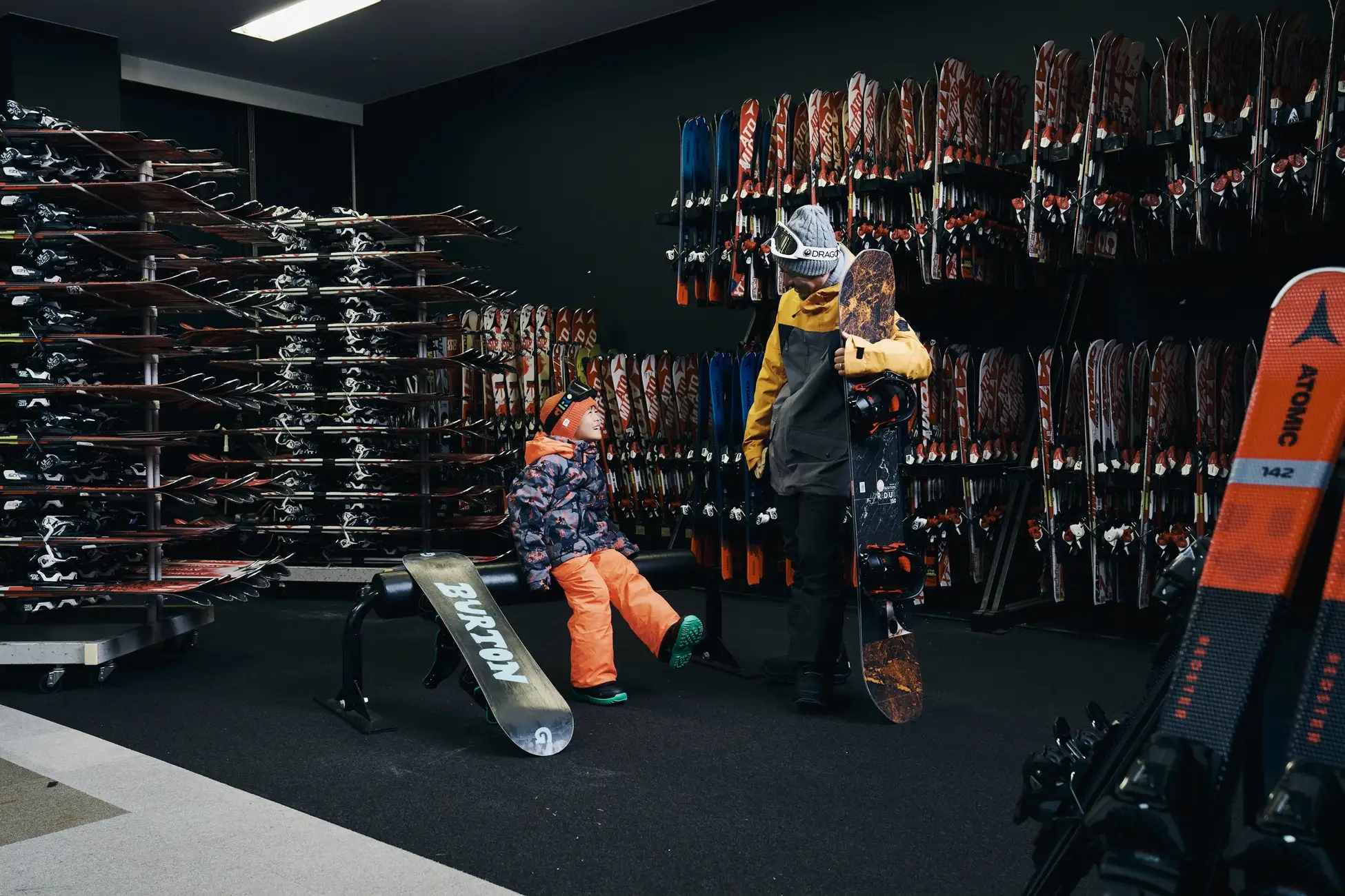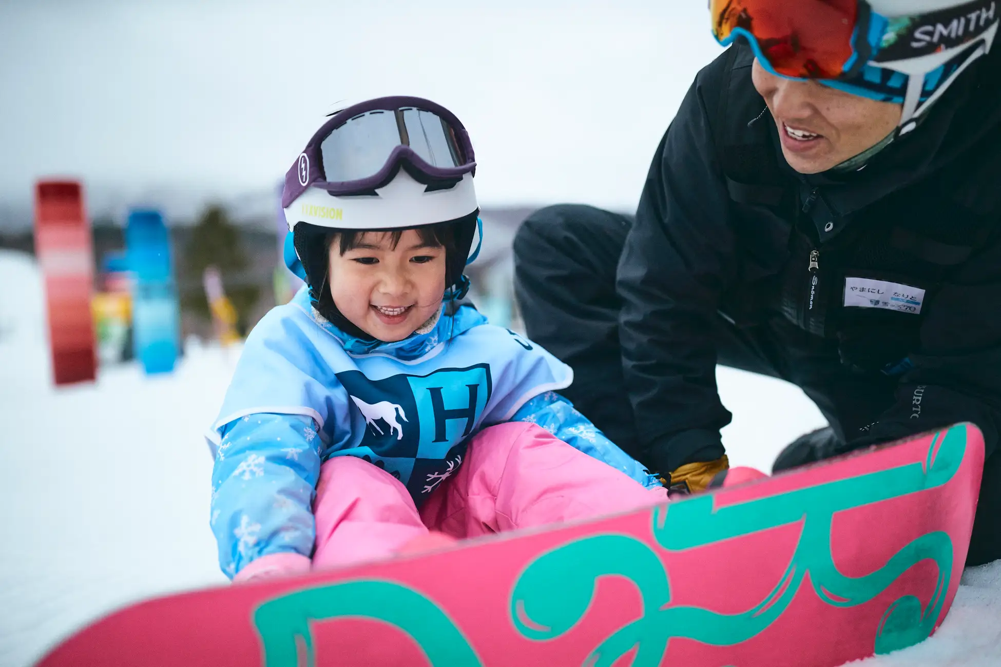 レッスン中、保護者の方はお子様の成長を間近で見守ることができます。寒さ対策として、保護者用の防寒ウェアとスノーブーツも無料でレンタルできるため、雪山に慣れていない方でも快適に子供たちの勇姿を撮影・応援可能です。レッスン終了後には、頑張った証として「スノーボーダー認定メダル」を授与。憧れの選手と同じようにメダルを首にかける体験を通じて、大きな達成感と自信を育みます。
