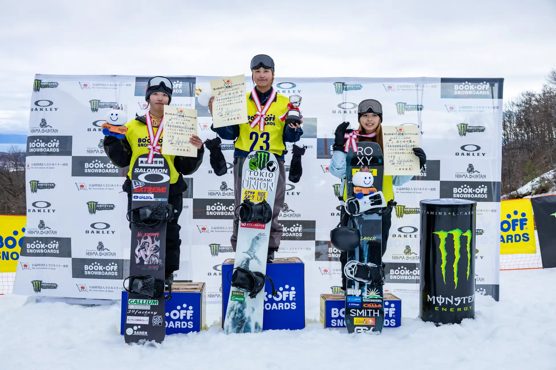 男子は、複数の冬季五輪メダリストが参加する中、木村悠斗選手が優勝しました。五輪金メダリストである実兄の木村葵来選手は2位、五輪銀メダリストの木俣椋真選手が3位でした。女子は、2024ユース五輪(韓国・江原道)ビッグエア金メダリストの村瀬由徠選手が優勝し、2位に鈴木萌々選手、3位に森井姫明麗選手が表彰台へ上がりました。