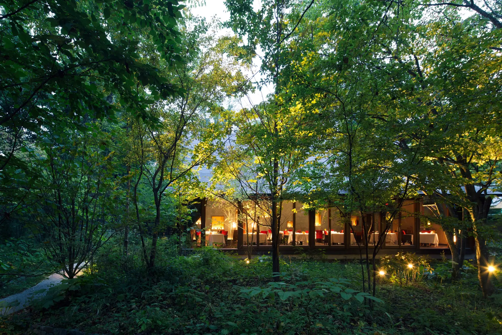 「星野リゾート 軽井沢ホテルブレストンコート」のメインダイニング「ブレストンコート ユカワタ ン」は、軽井沢の森に佇む一軒家レストランです。生命の源である水が育む森の恵みを、川魚を軸に独 自の視点で料理コンセプト「水のジビエ」に昇華させています。シェフとゲストが共創する料理の提供 方法「ミニマル・ガストロノミースタイル」で、軽やかで滋味あふれるフランス料理を堪能できます。