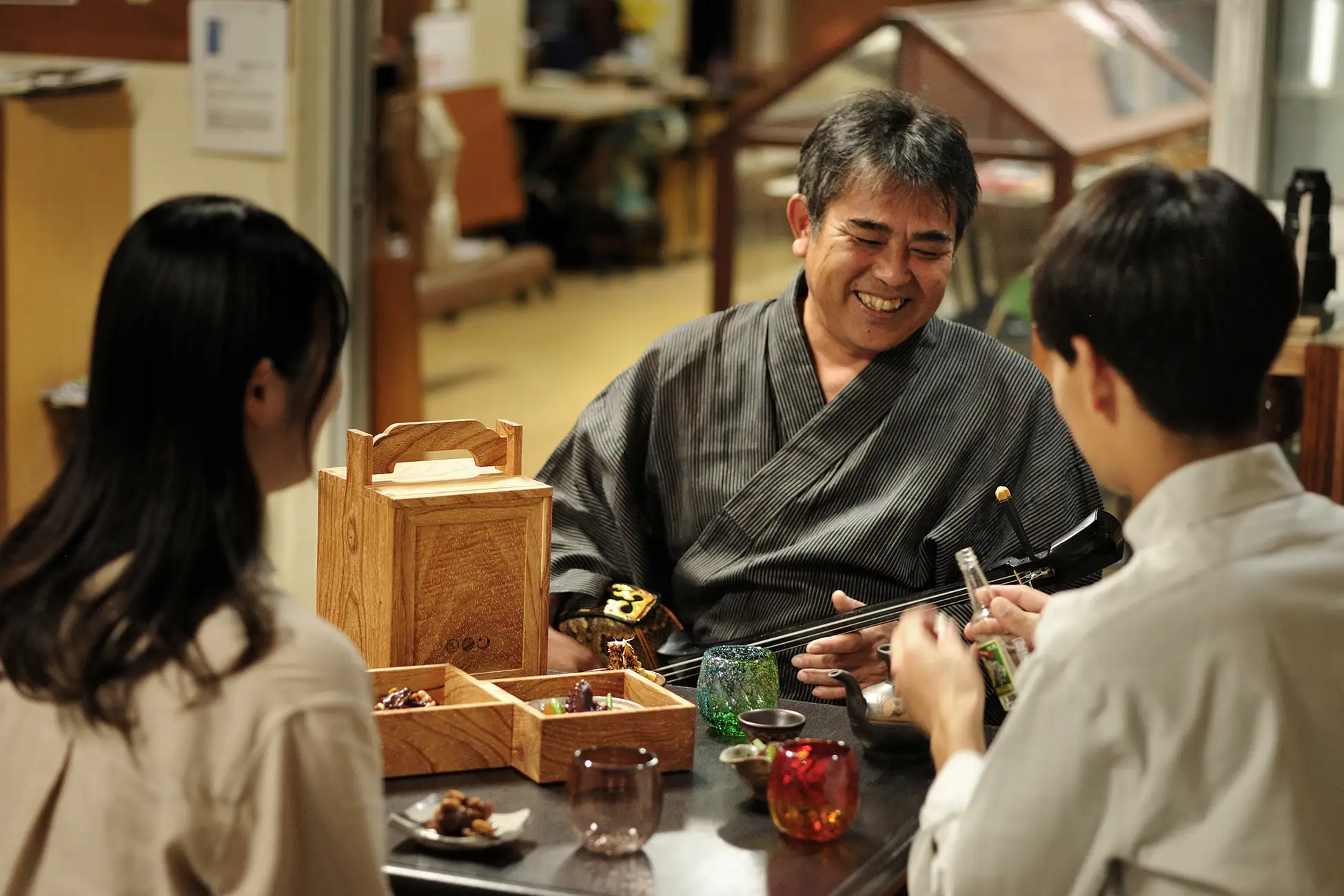 島の方々にとって、「ゆんたく」はコミュニケーションの場や結束の場としても欠かせない時間でした。そのため、夜の時間に島の方とのゆんたくを楽しめるプログラム「島の唄い手と過ごすひととき」を提供します。ゆんたくには欠かせない泡盛とおつまみを片手に、島の唄に耳を傾けます。唄われるのは、かつて農業の指針として大切にされていた、夏の夜空に輝く「群星(むりかぶし)」を継承する古謡などです。島の住人のような夏の宵のひとときを楽しむことができます。