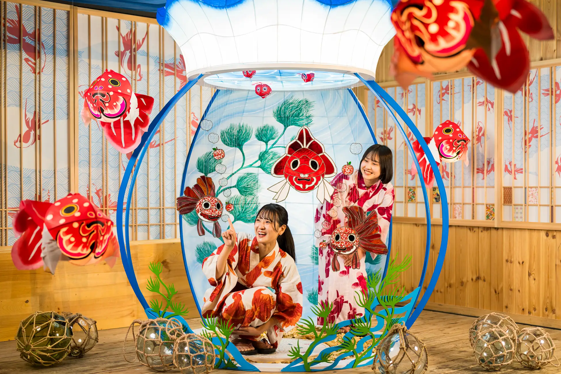 特徴3 金魚ねぷたと一緒に水中にいるような写真が撮れる「巨大金魚鉢」