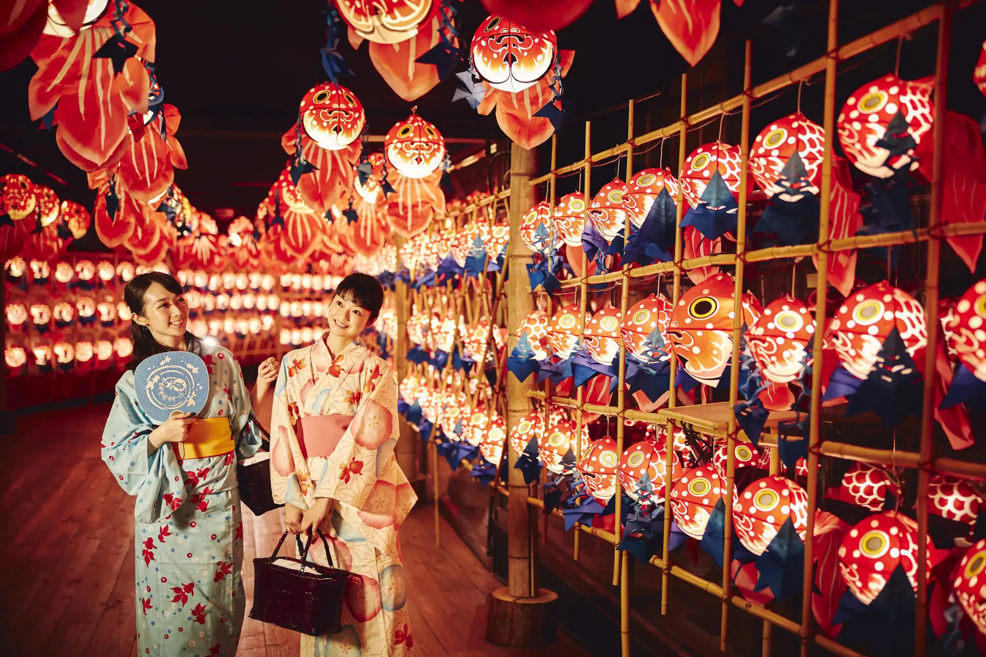 300個以上の金魚ねぷたに囲まれる「金魚ねぷた灯篭回廊」
