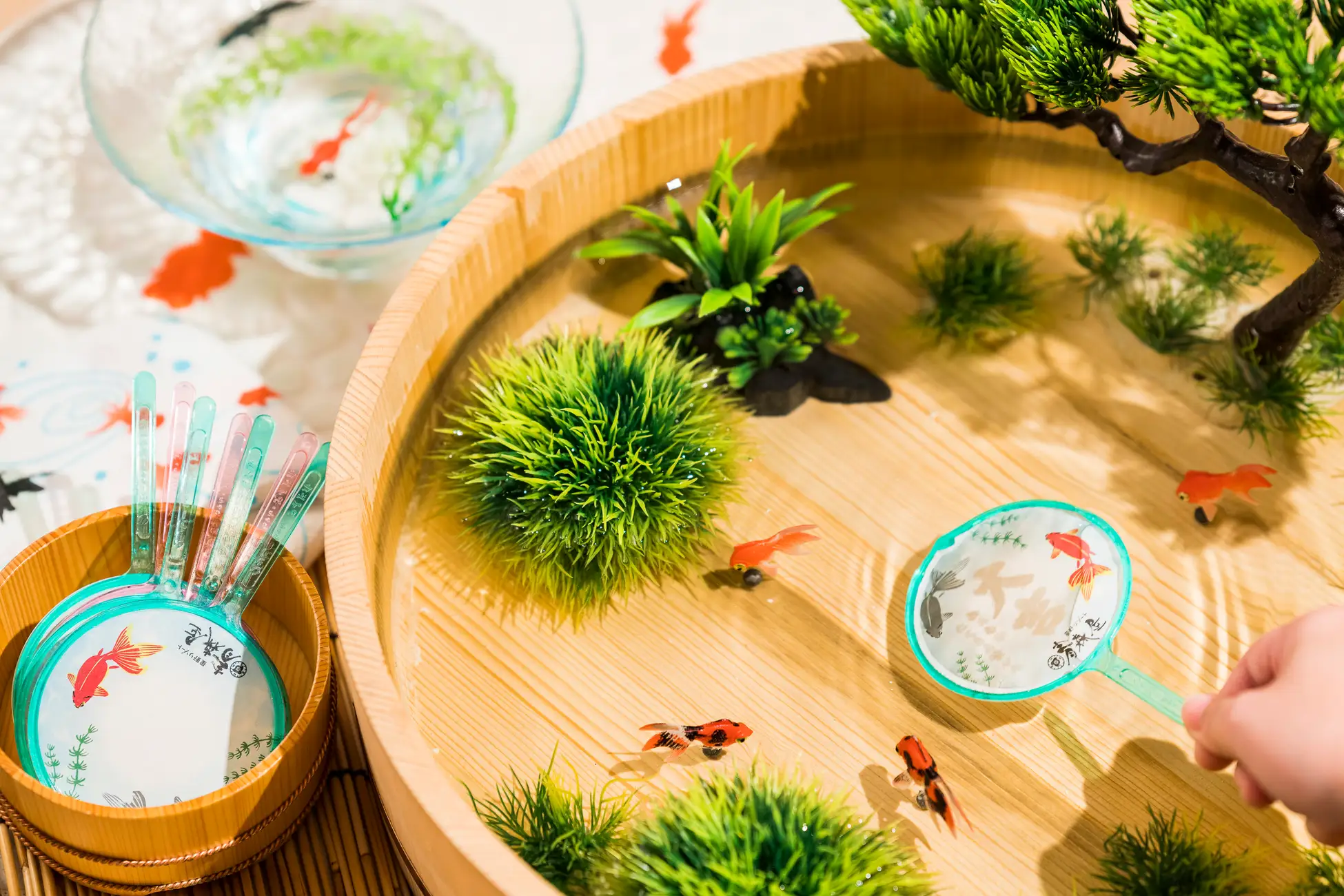 金魚すくいに使用するポイの形をしたおみくじが体験できます。選んだポイを水に浸すと、ポイの表面に運勢が浮かび上がるのが特徴です。大吉、吉などの運勢に加え、⻘森屋での滞在をより楽しむための一言が⻘森の方言で書かれています。体験後のポイは、旅の思い出として持ち帰れます。