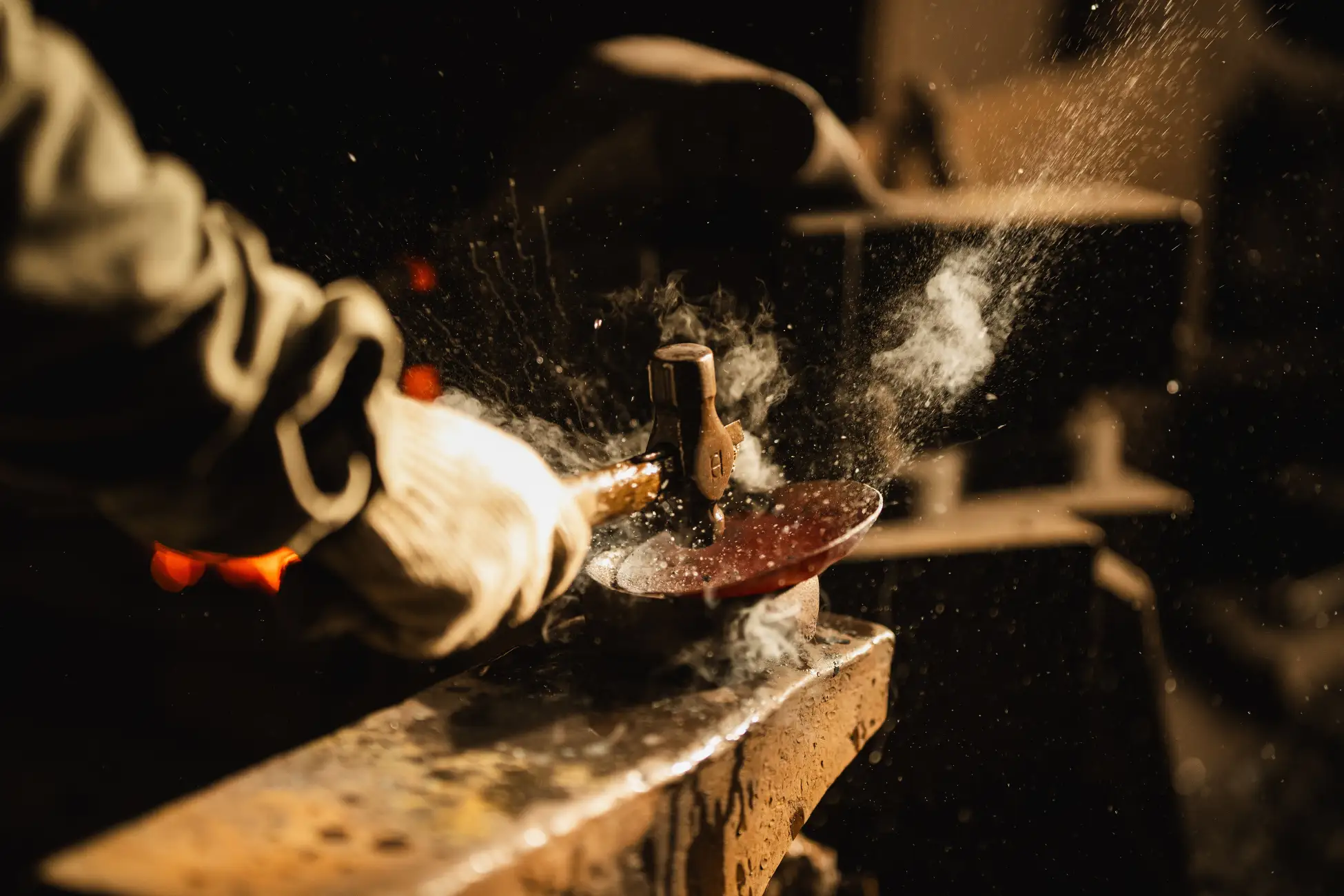 特徴1 神聖な鍛冶場で火花を散らす、世界に一つだけの「鍛造トレイ」製作